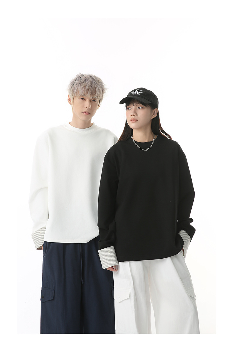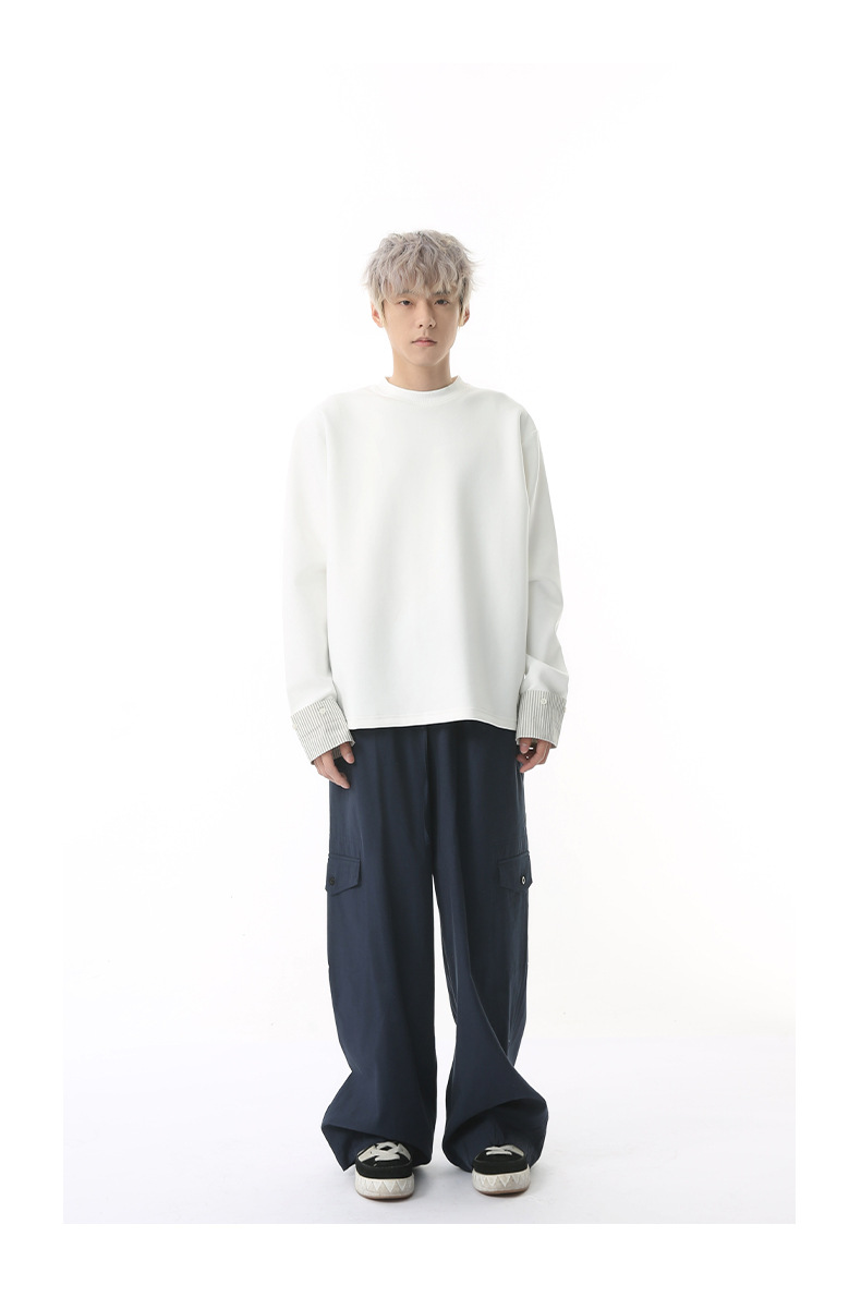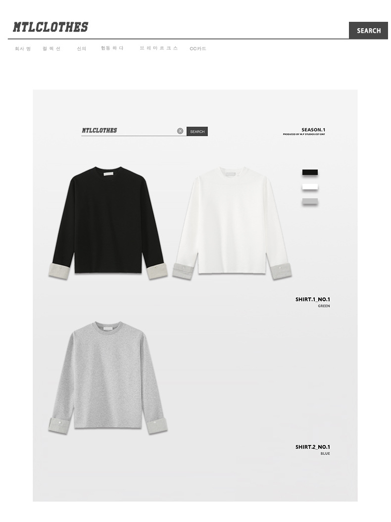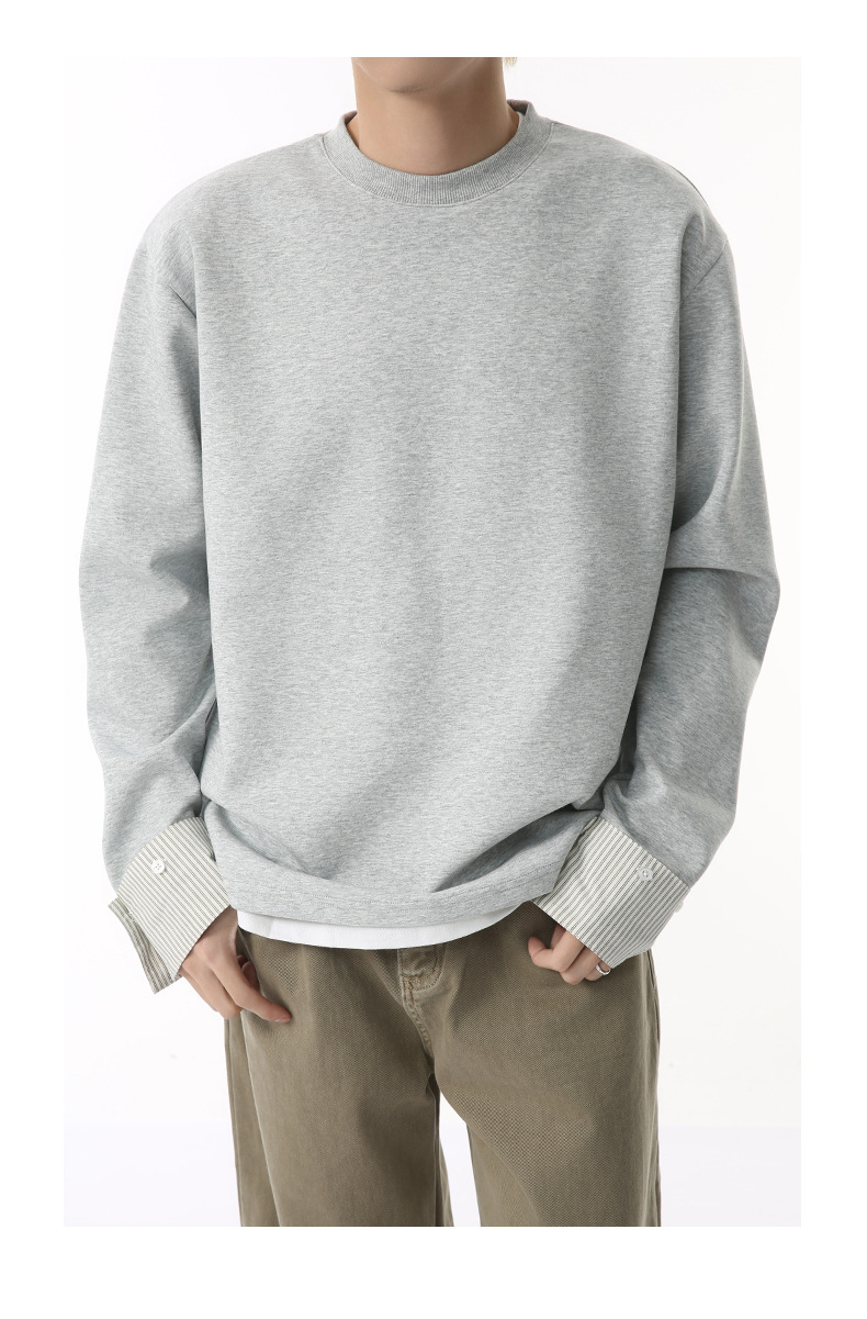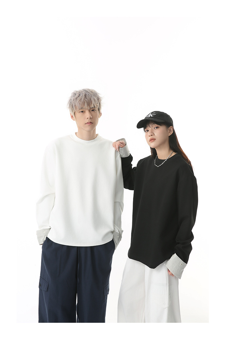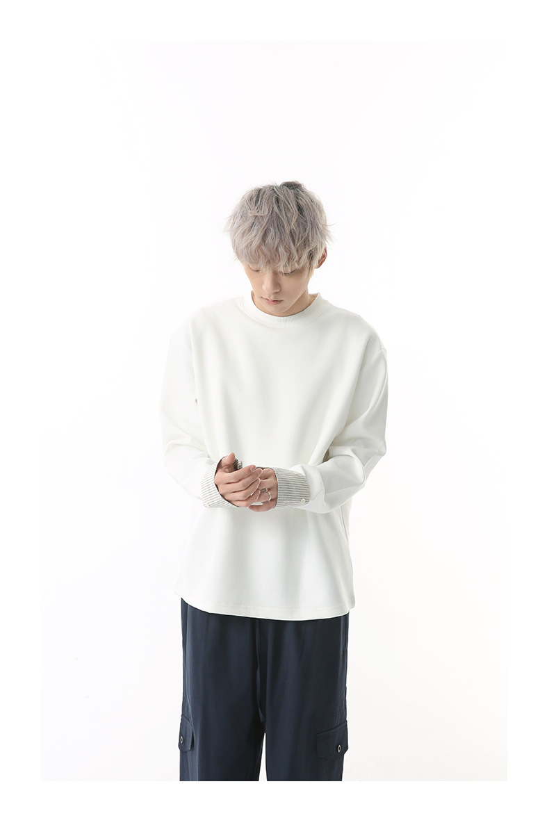 MTLCLOTHES 남성용 | 한국어 버전의 간단한 스트라이프 스티칭 슬리브 디자인 둥근 목 느슨한 바닥 티셔츠 캐주얼스토어 가기