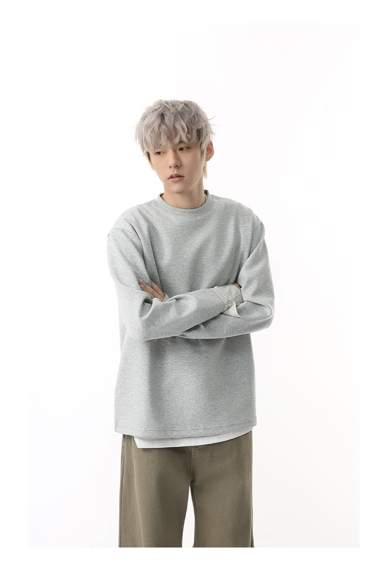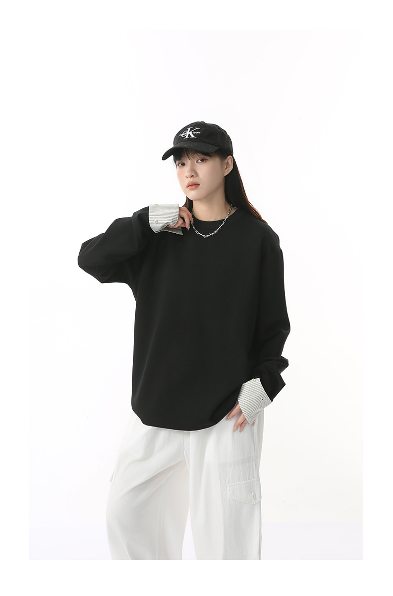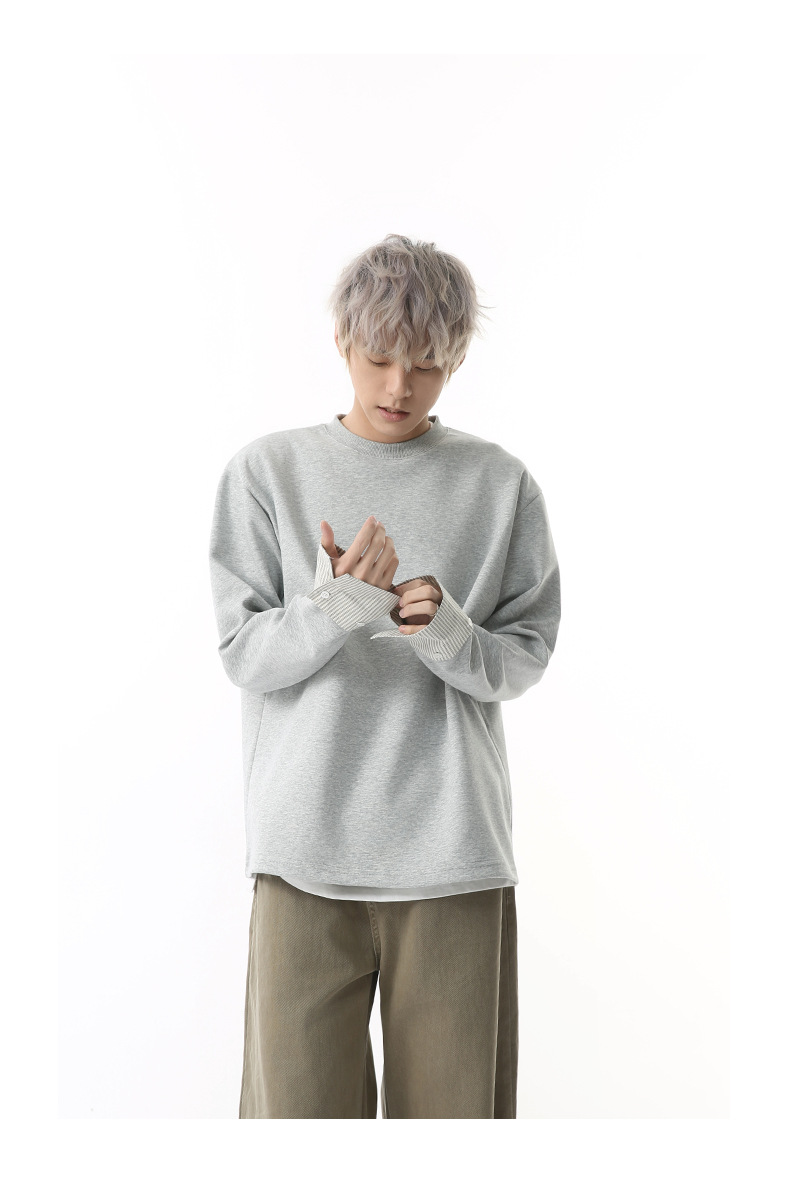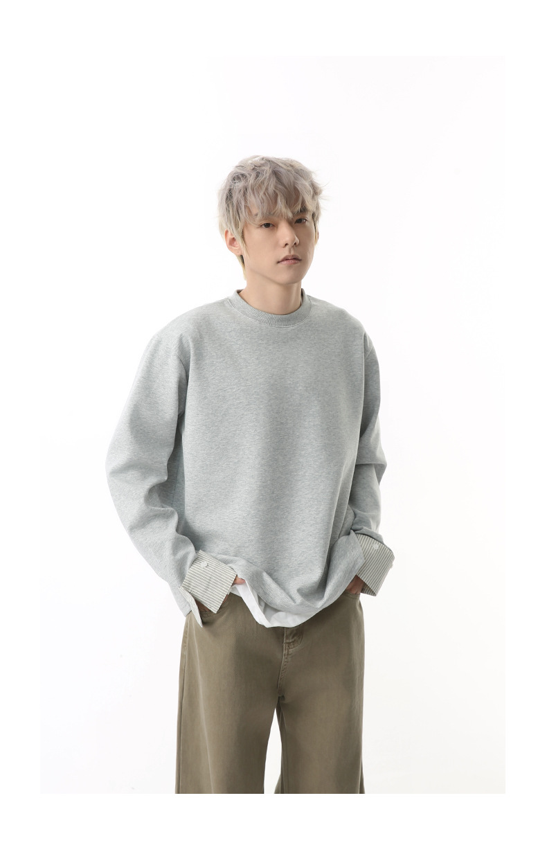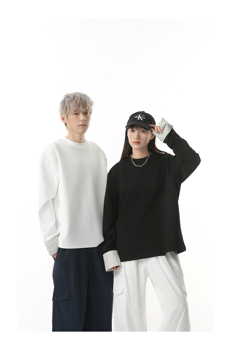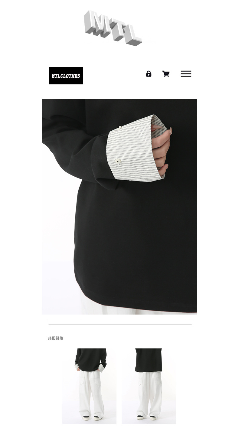 MTLCLOTHES 남성용 | 한국어 버전의 간단한 스트라이프 스티칭 슬리브 디자인 둥근 목 느슨한 바닥 티셔츠 캐주얼스토어 가기