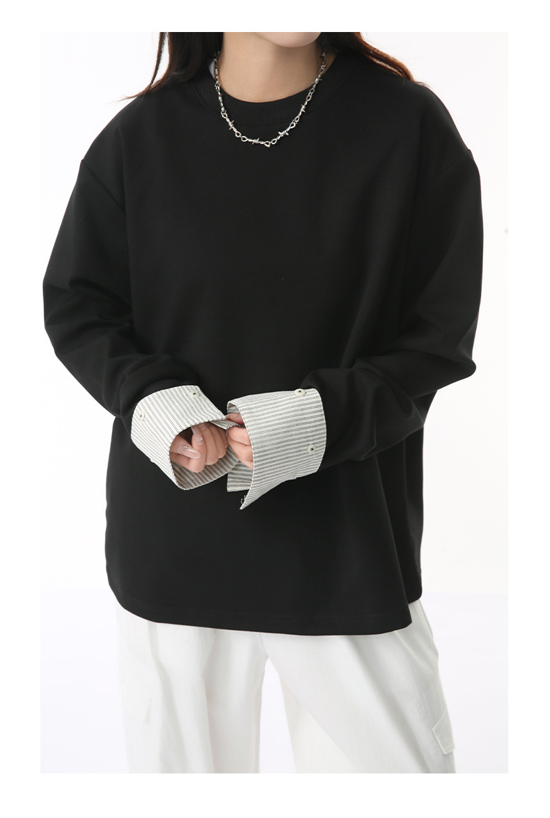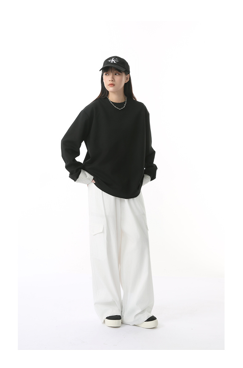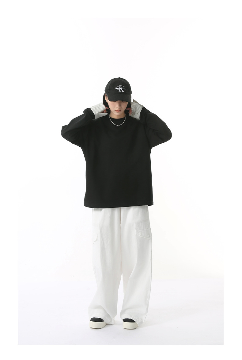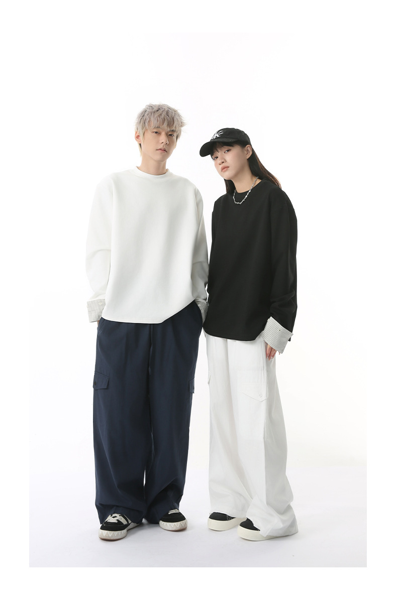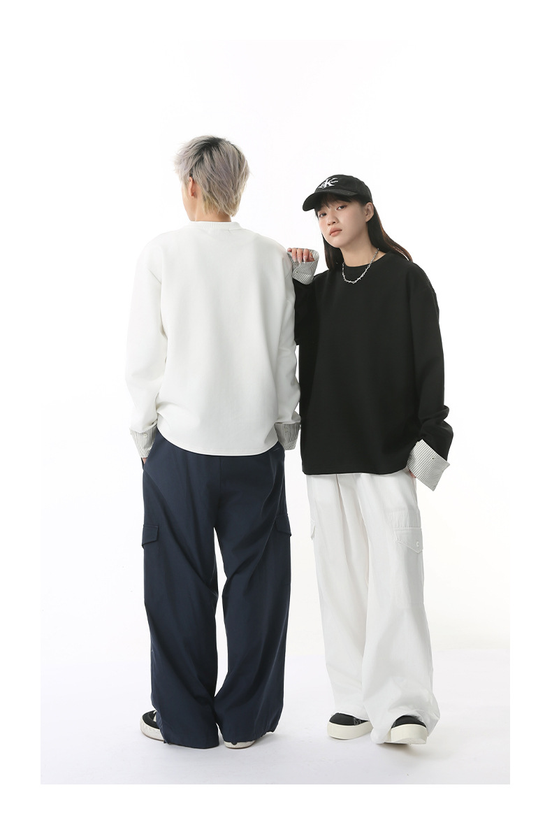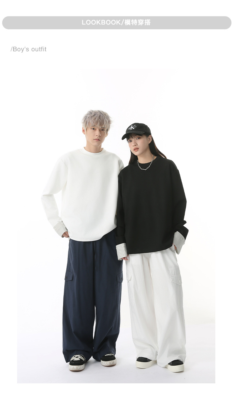 MTLCLOTHES 남성용 | 한국어 버전의 간단한 스트라이프 스티칭 슬리브 디자인 둥근 목 느슨한 바닥 티셔츠 캐주얼스토어 가기