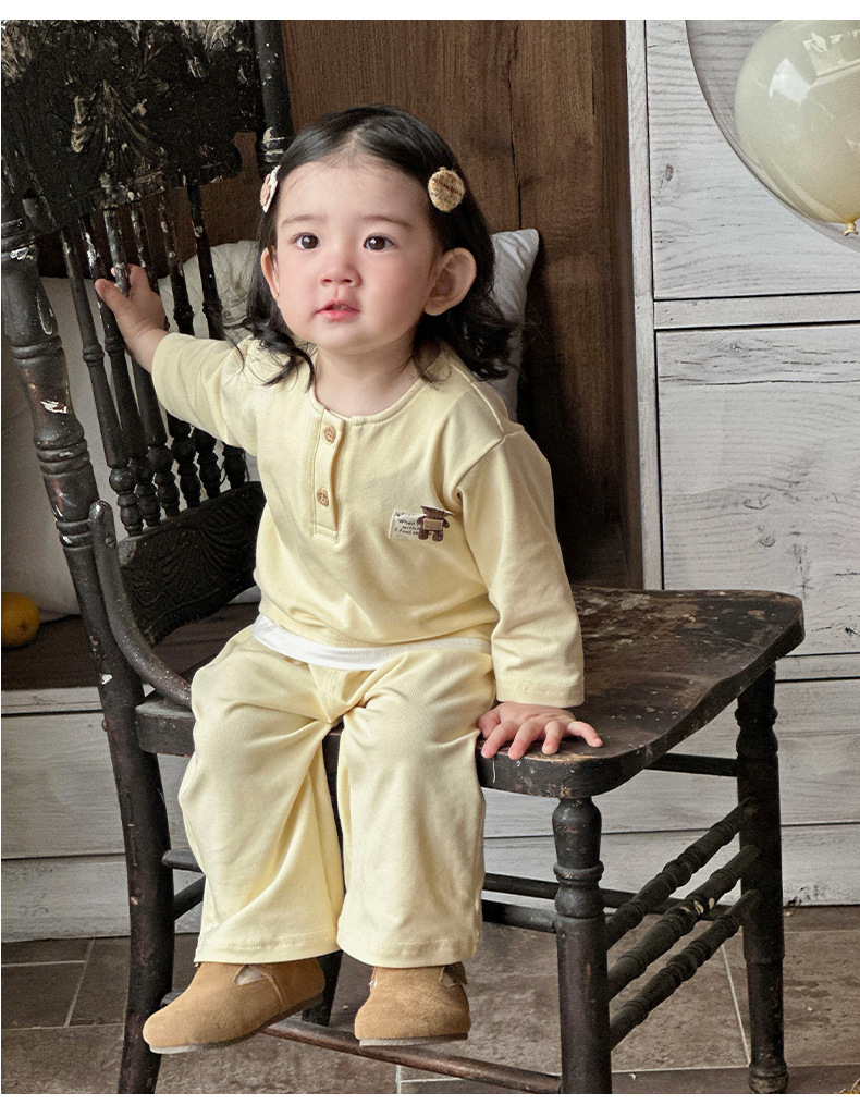 한국 어린이 의류 봄과 가을 새로운 아기 소녀 세트 단색 귀여운 곰 땀 바지 투피스 의상스토어 가기