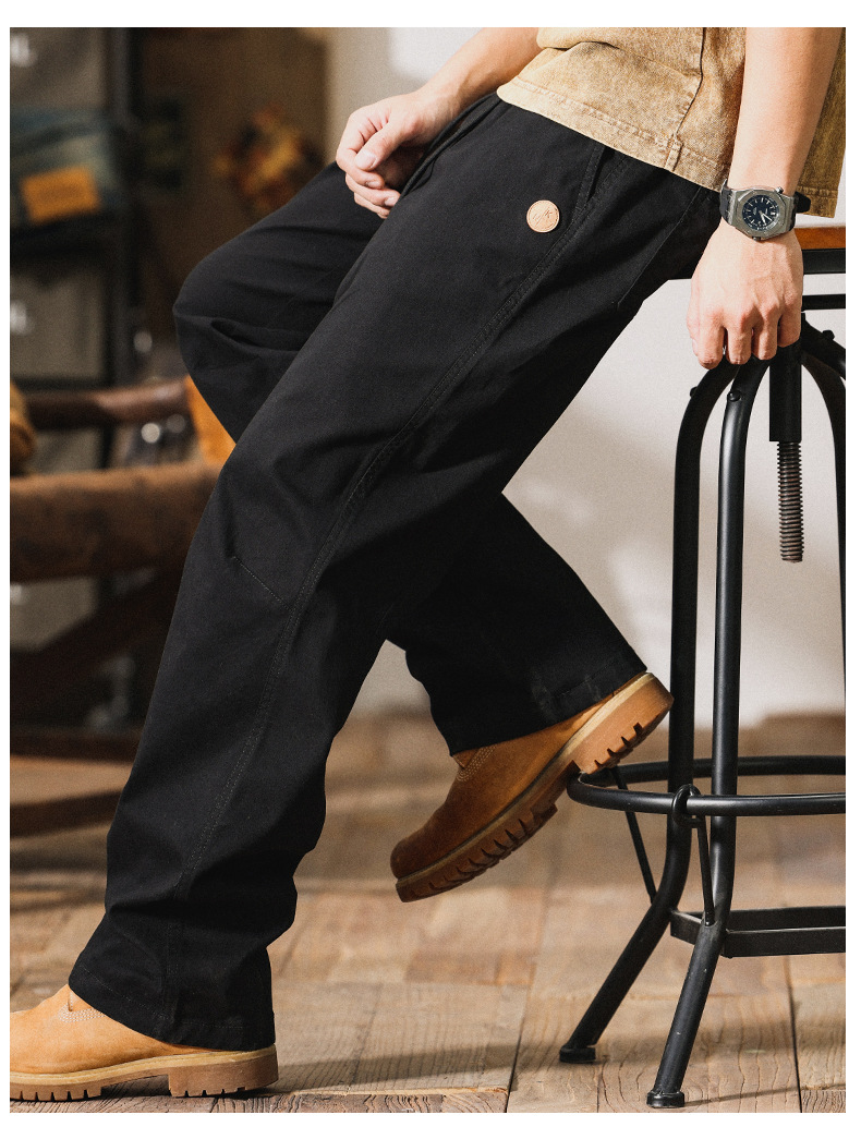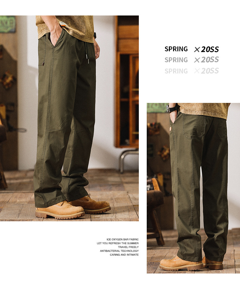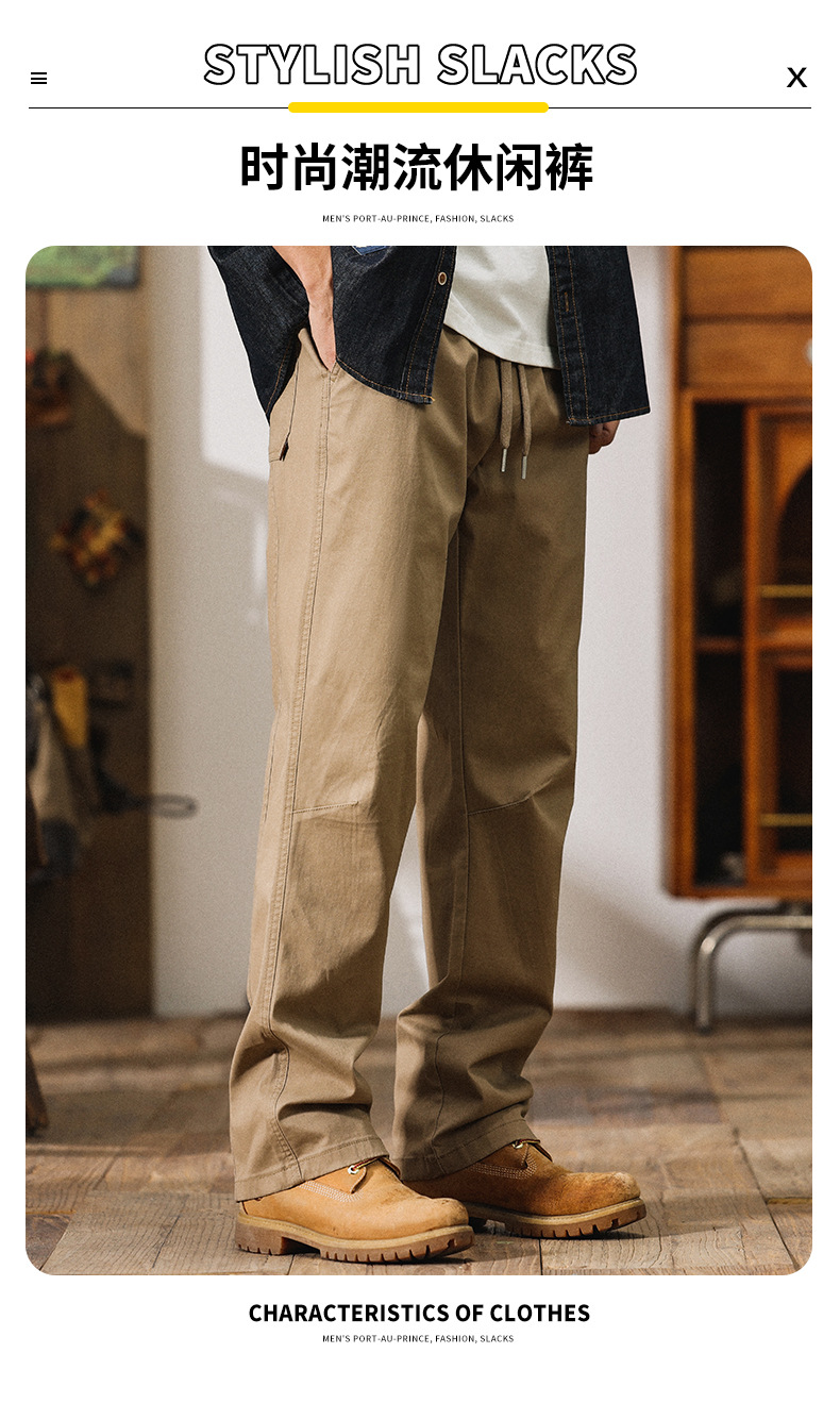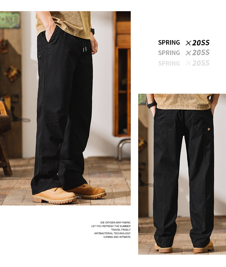 5302 | 빅사이즈 남성복 봄 여름 신상품 아메리칸 하이 스트리트 스타일 캐주얼 팬츠 남성 루즈핏 신축성 와이드 레그 스트레이트 롱 팬츠스토어 가기