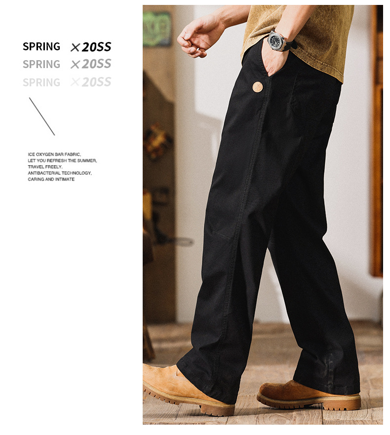 5302 | 빅사이즈 남성복 봄 여름 신상품 아메리칸 하이 스트리트 스타일 캐주얼 팬츠 남성 루즈핏 신축성 와이드 레그 스트레이트 롱 팬츠