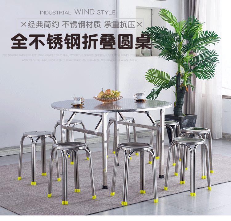 A8L9U 스테인레스 스틸 접이식 대형 라운드 테이블 탑 다이닝 라운드 테이블 테이블 가정용 농촌 다이닝 테이블 라운드 테이블 터닝스토어 가기
