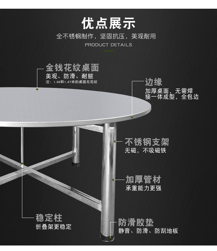 A8L9U 스테인레스 스틸 접이식 대형 라운드 테이블 탑 다이닝 라운드 테이블 테이블 가정용 농촌 다이닝 테이블 라운드 테이블 터닝