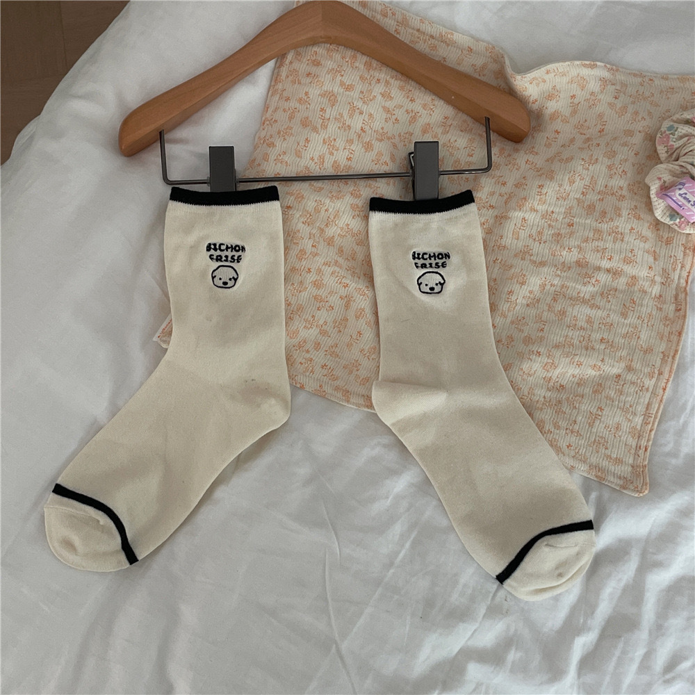 LOULOR 한국 동대문 여성 양말 봄과 가을 만화 자수 개 캐주얼 미드 튜브 양말