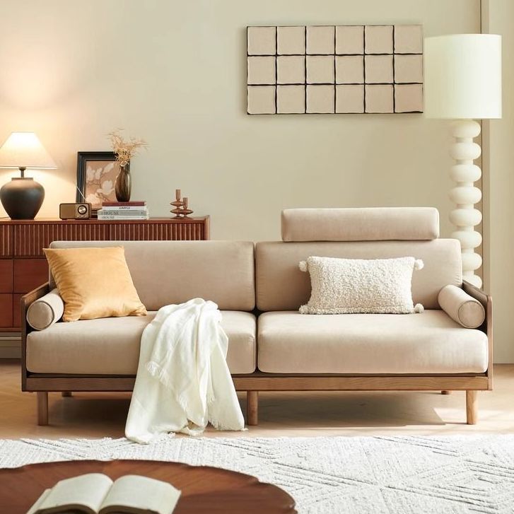 레트로 스타일 솔리드 우드 패브릭 소파 작은 아파트 더블 3 인 거실 로그 스타일 노르딕 일본식 스트레이트 로우 소파