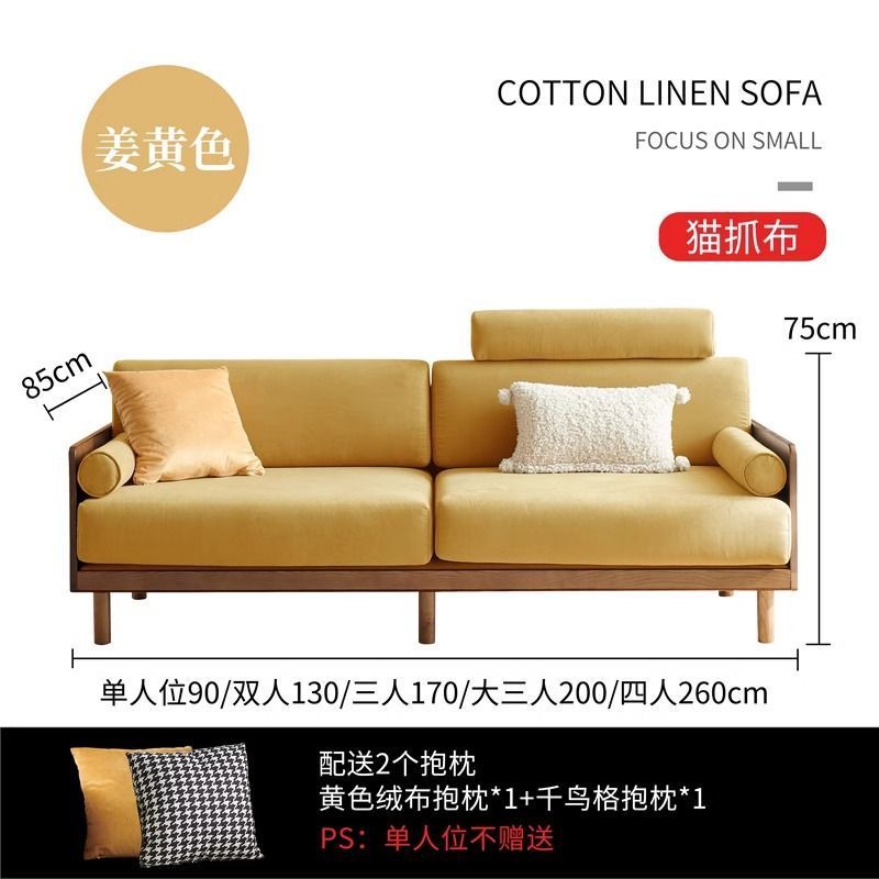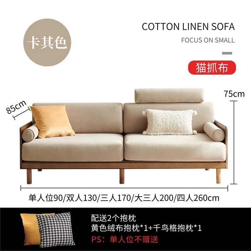 레트로 스타일 솔리드 우드 패브릭 소파 작은 아파트 더블 3 인 거실 로그 스타일 노르딕 일본식 스트레이트 로우 소파스토어 가기