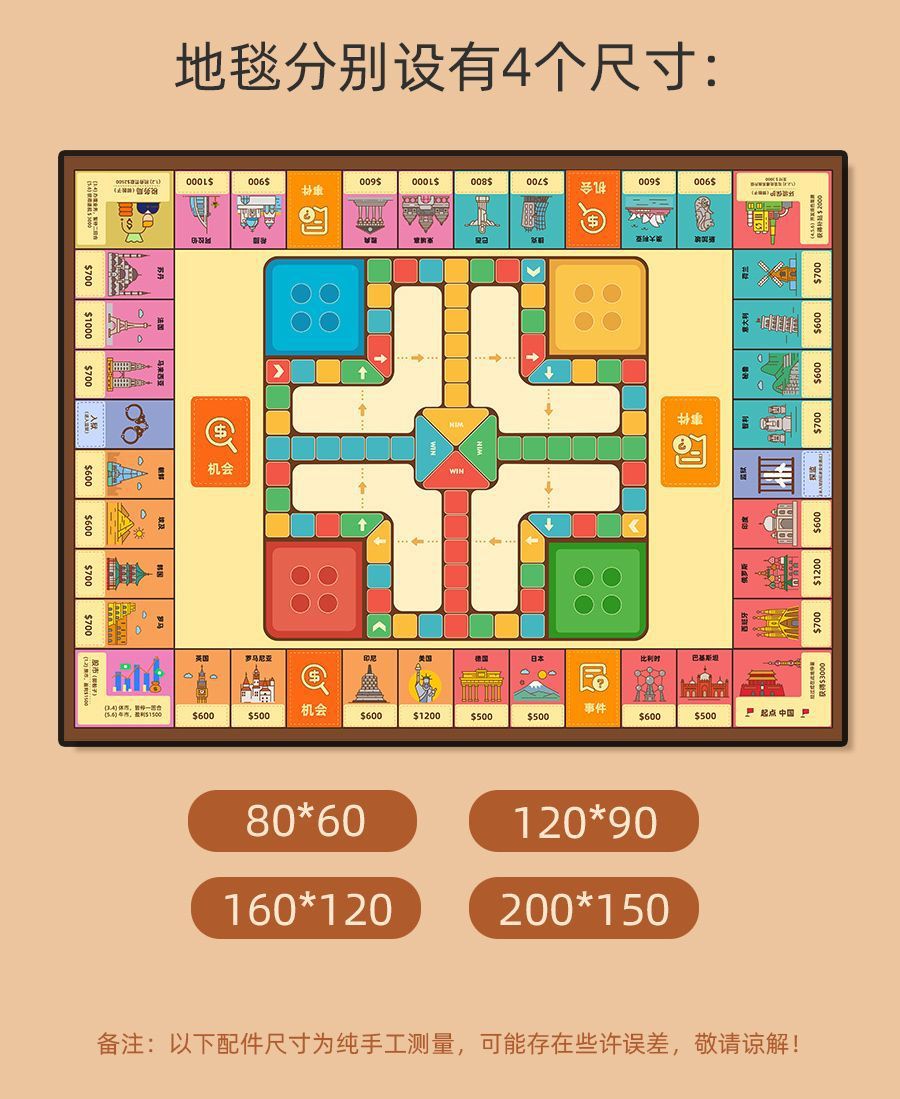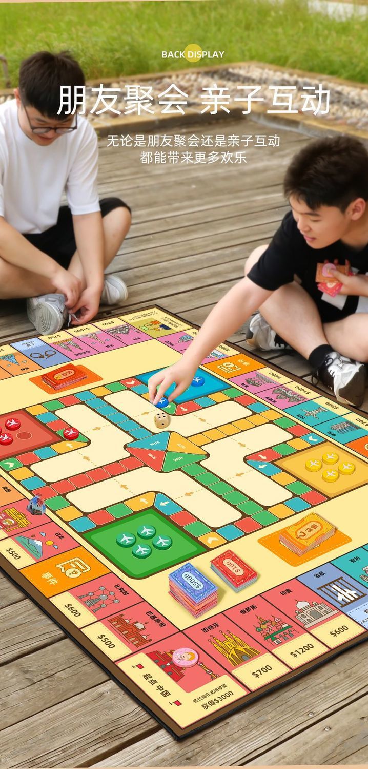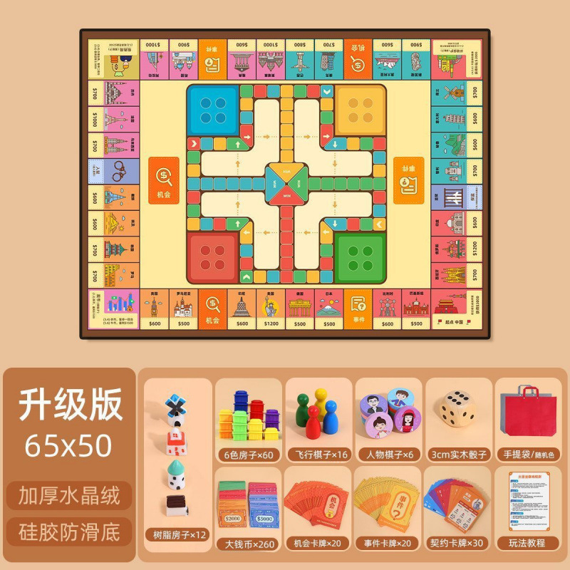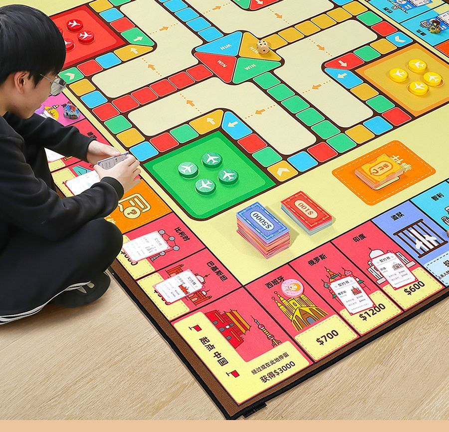 대형 리치 월드 투어 디럭스 보드 게임 어린이 성인 보드 게임 플라잉 체스 투인원 카펫 매트