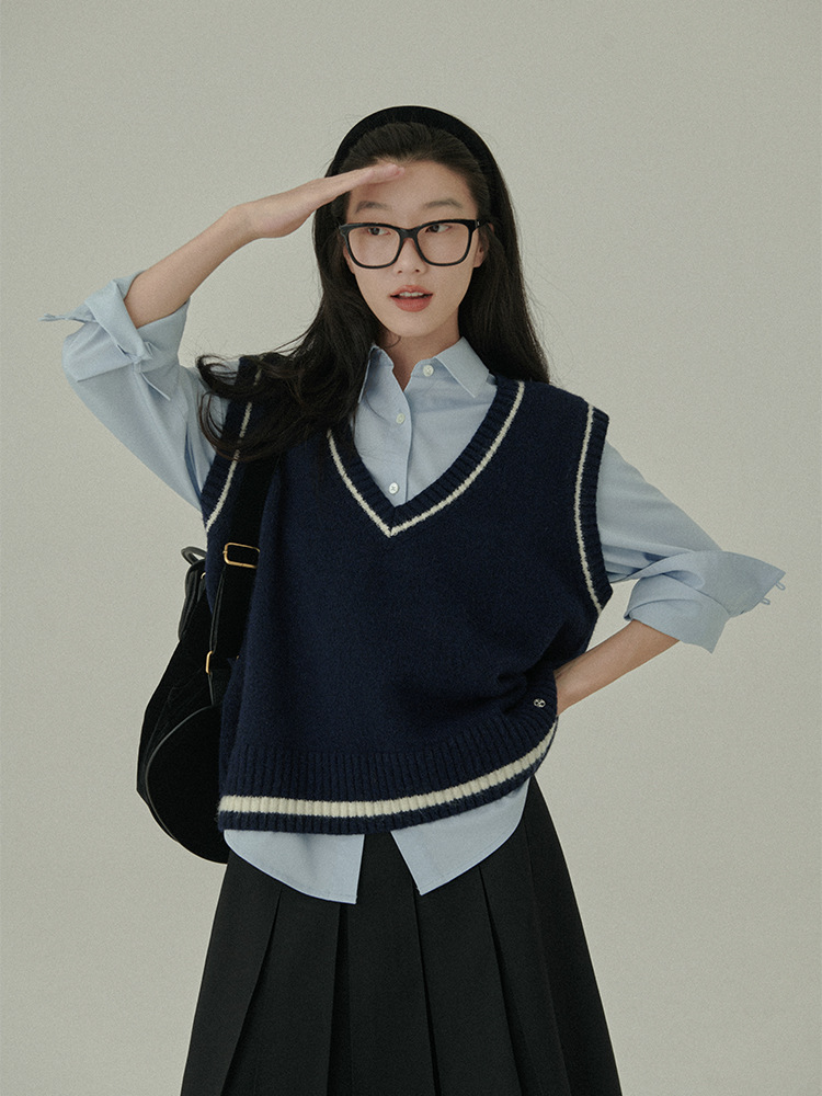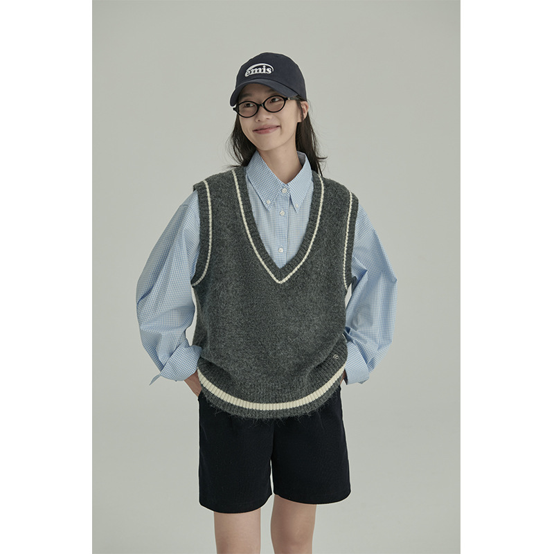 레스토랑 칼리지 걸스 쿨 아티스틱 레트로 롱 울 블렌드 니트 조끼 셔츠 세트 여성스토어 가기