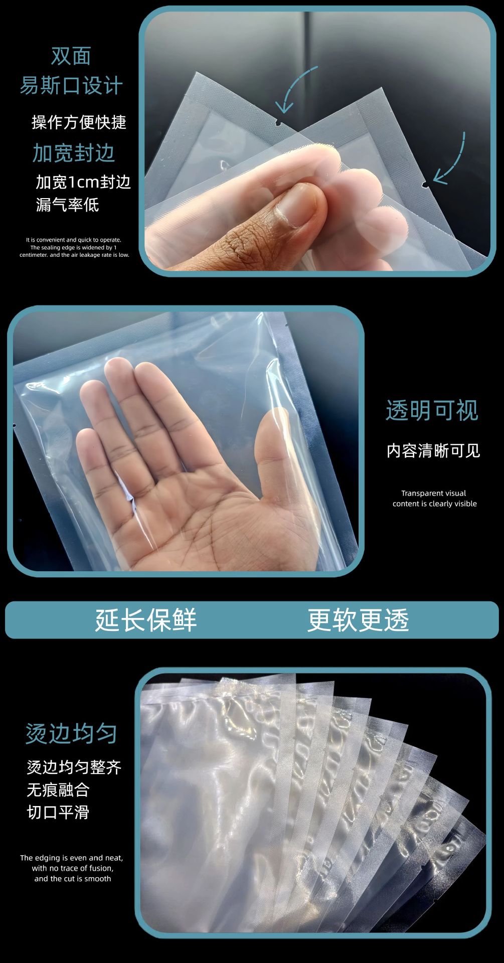 진공 식품 포장 백 폴리에스터 광택 투명 스낵 진공 백 조리 식품 지퍼백 플라스틱 신선도 유지 밀봉 백