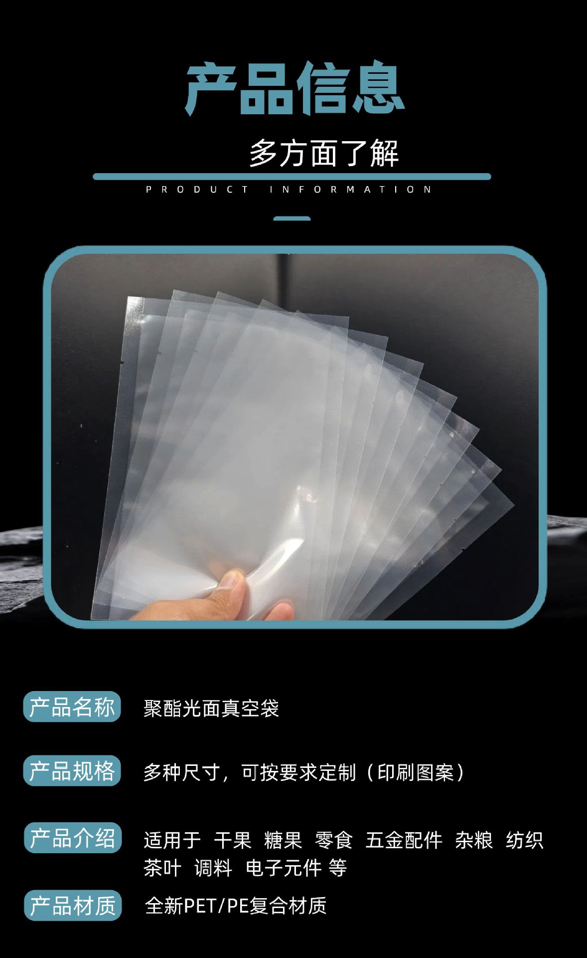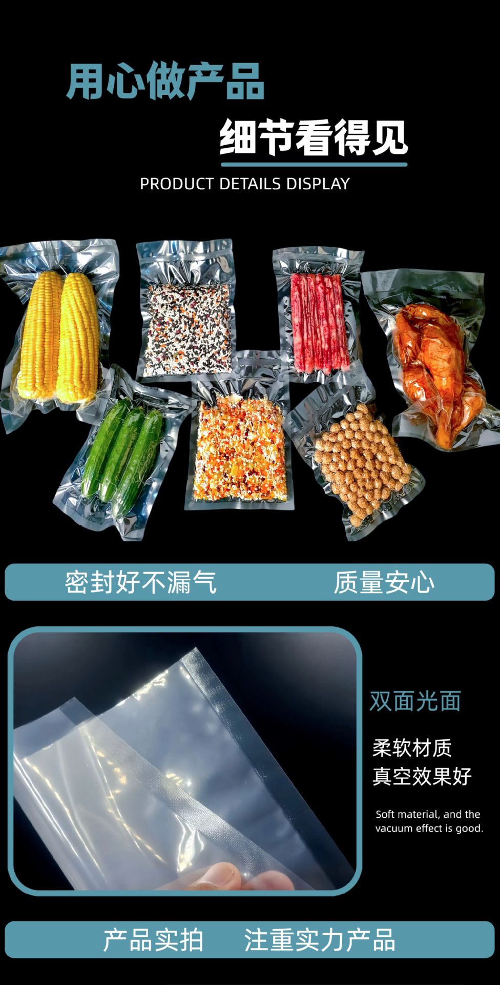 진공 식품 포장 백 폴리에스터 광택 투명 스낵 진공 백 조리 식품 지퍼백 플라스틱 신선도 유지 밀봉 백스토어 가기