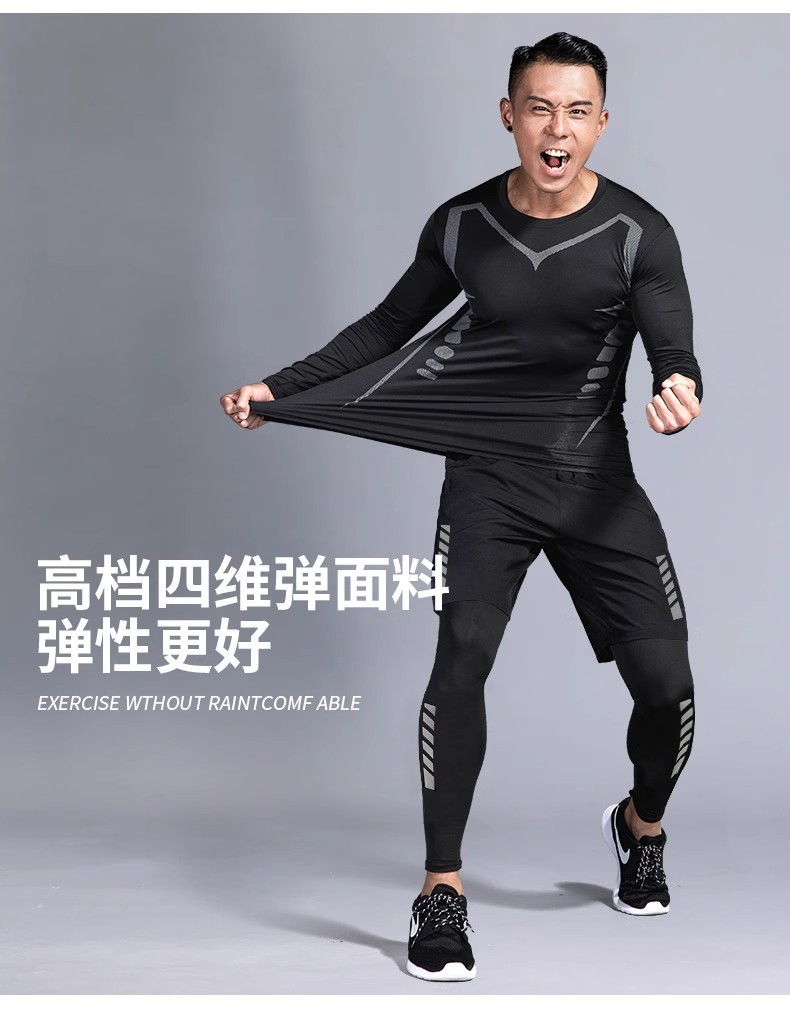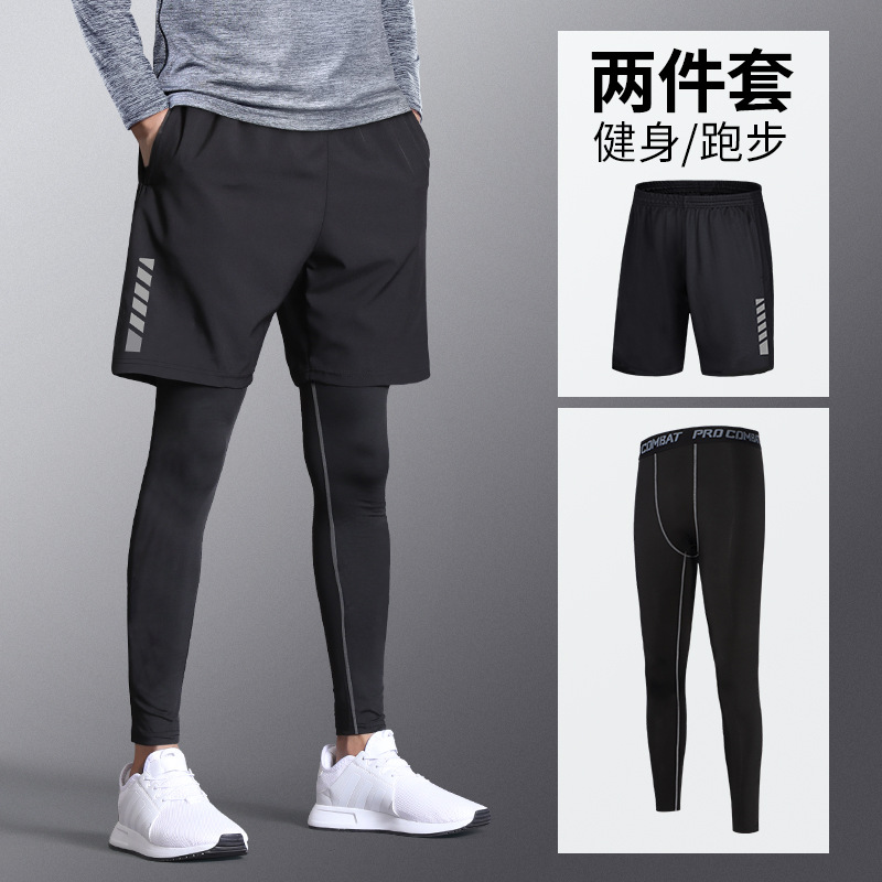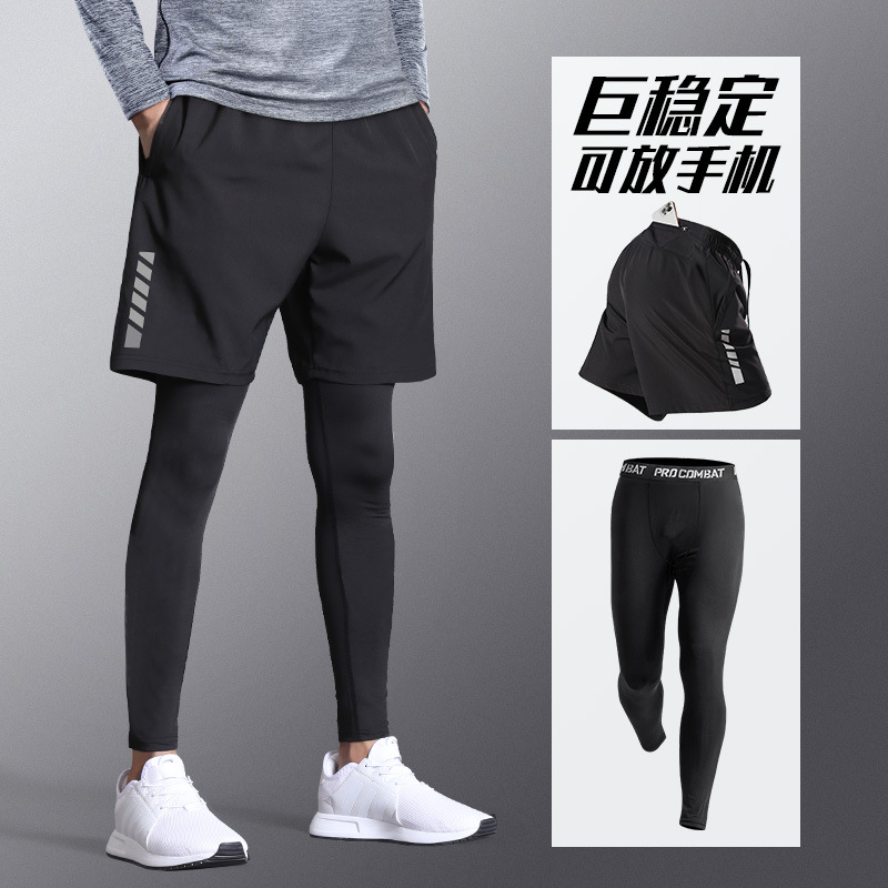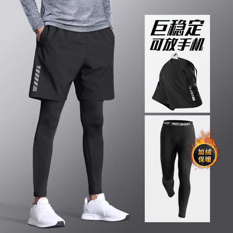 "달리는 바지 꽉 바지 남자는 휴대 전화를 넣을 수 있습니다 빠른 건조한 가을과 겨울 높은 탄력 운동 세트 농구 압축 훈련
