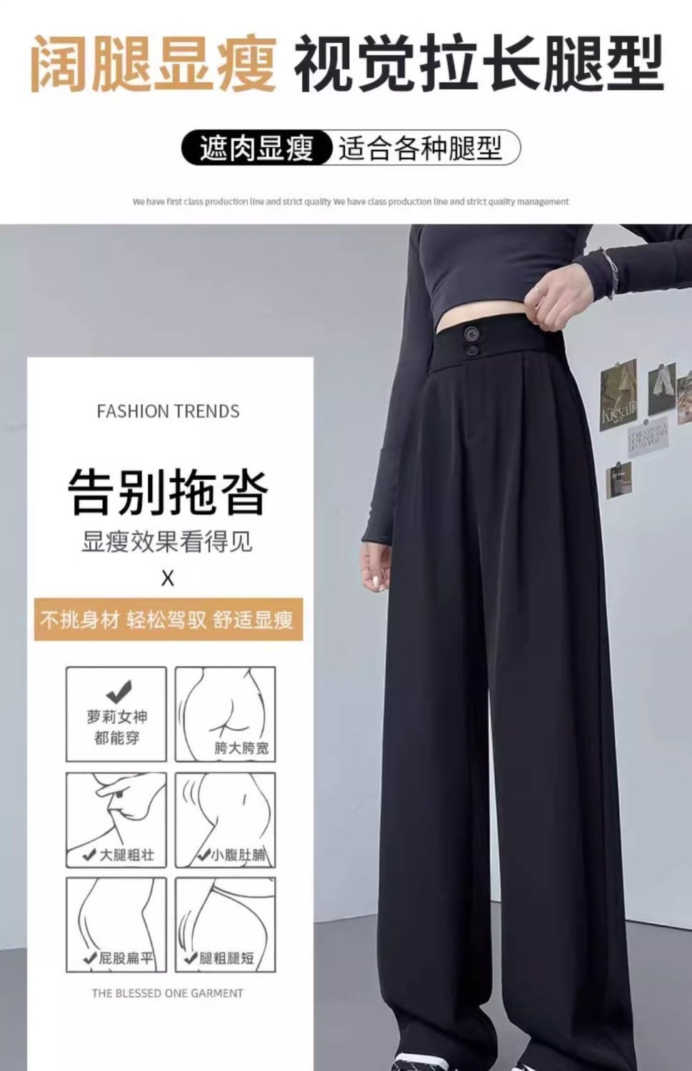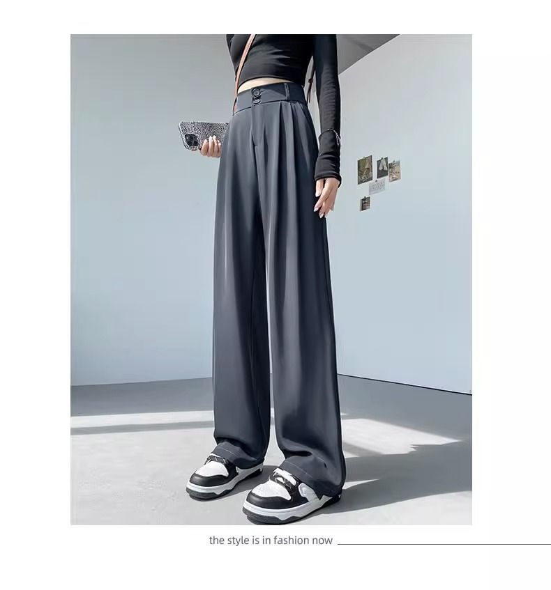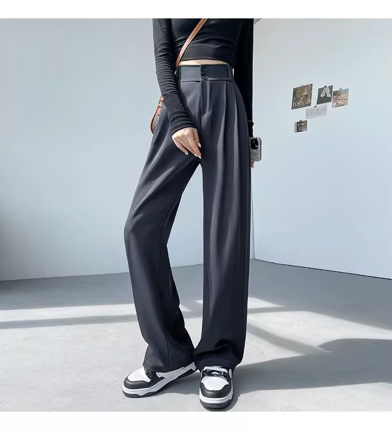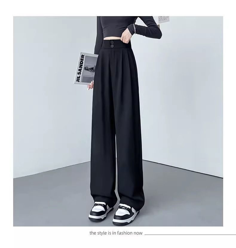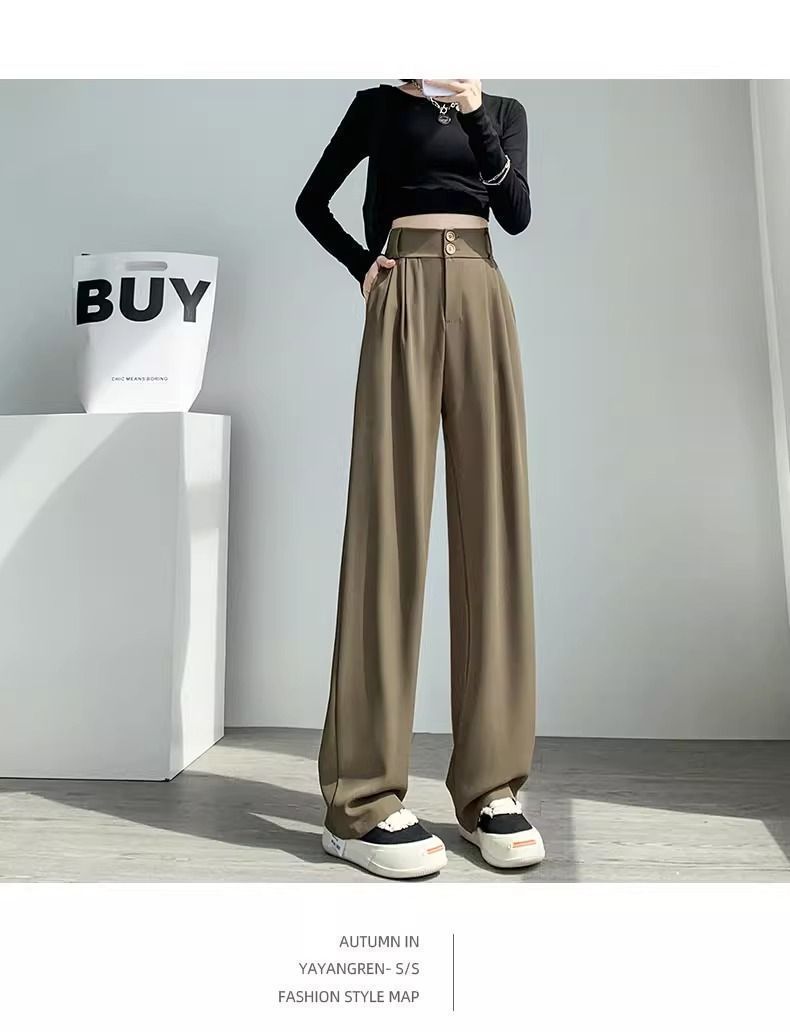 원피스 바지 여성의 봄과 가을 2025 새로운 높은 허리 슬리밍 펜던트 스트레이트 캐주얼 느슨한 좁은 넓은 다리 바지스토어 가기