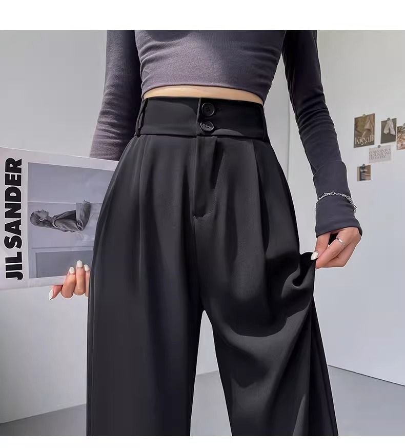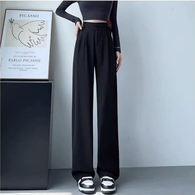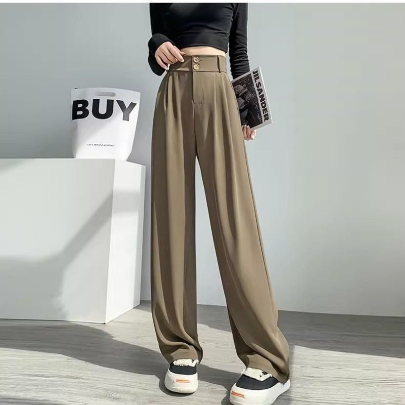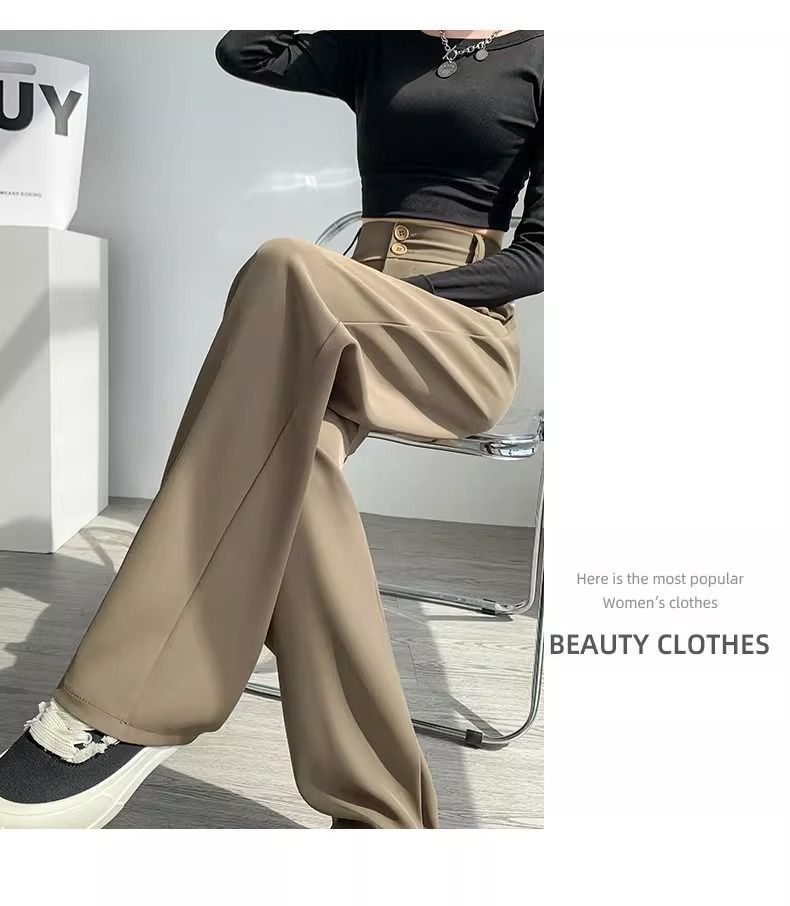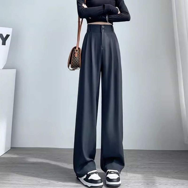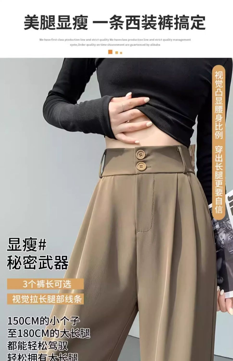 원피스 바지 여성의 봄과 가을 2025 새로운 높은 허리 슬리밍 펜던트 스트레이트 캐주얼 느슨한 좁은 넓은 다리 바지스토어 가기