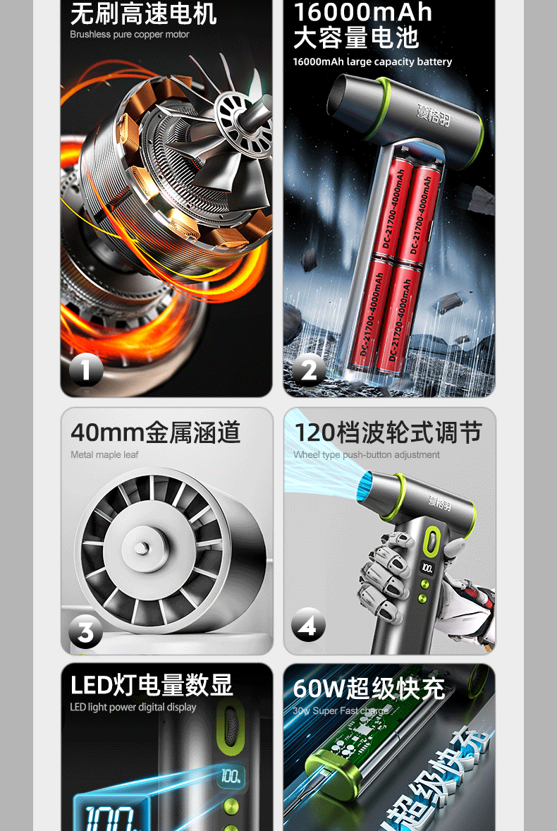 국경 간 새로운 130000 턴 폭력 헤어 드라이어 폭력 터보 팬 1 기계 다목적 송풍 흡입 충전 4 개