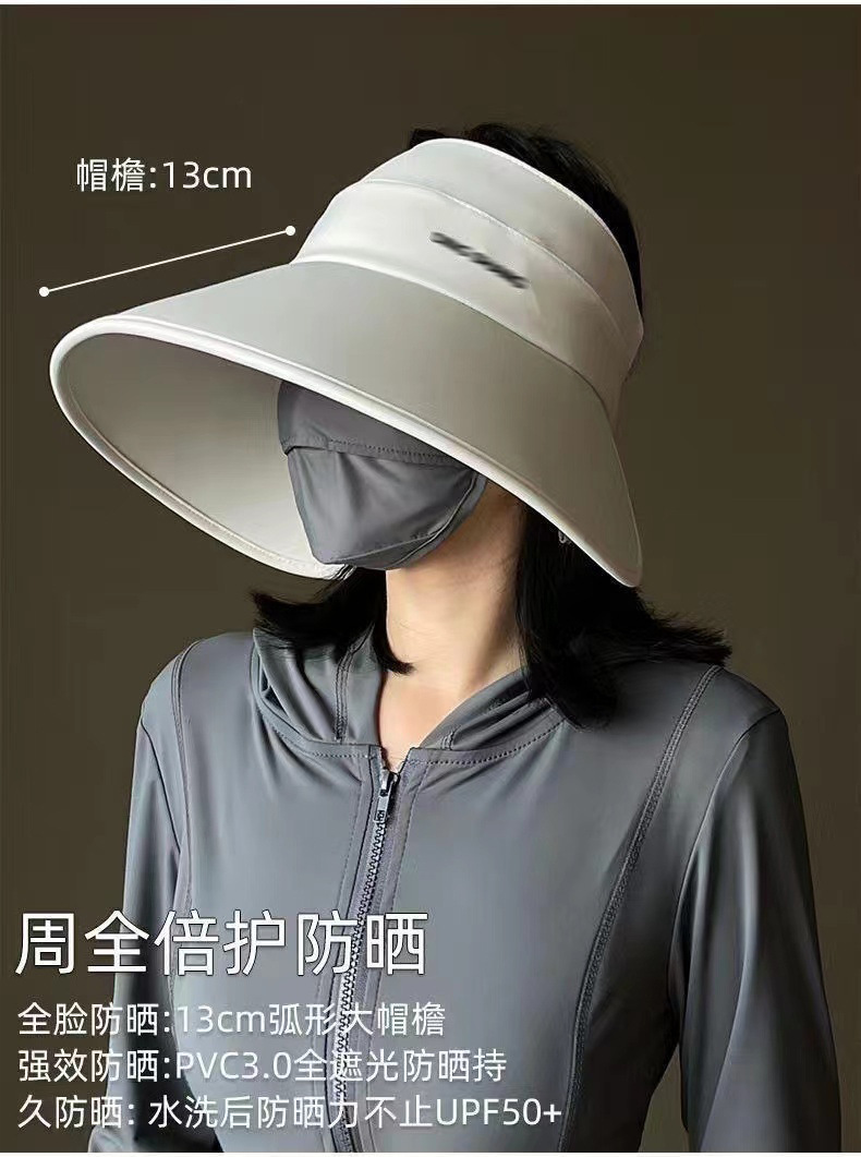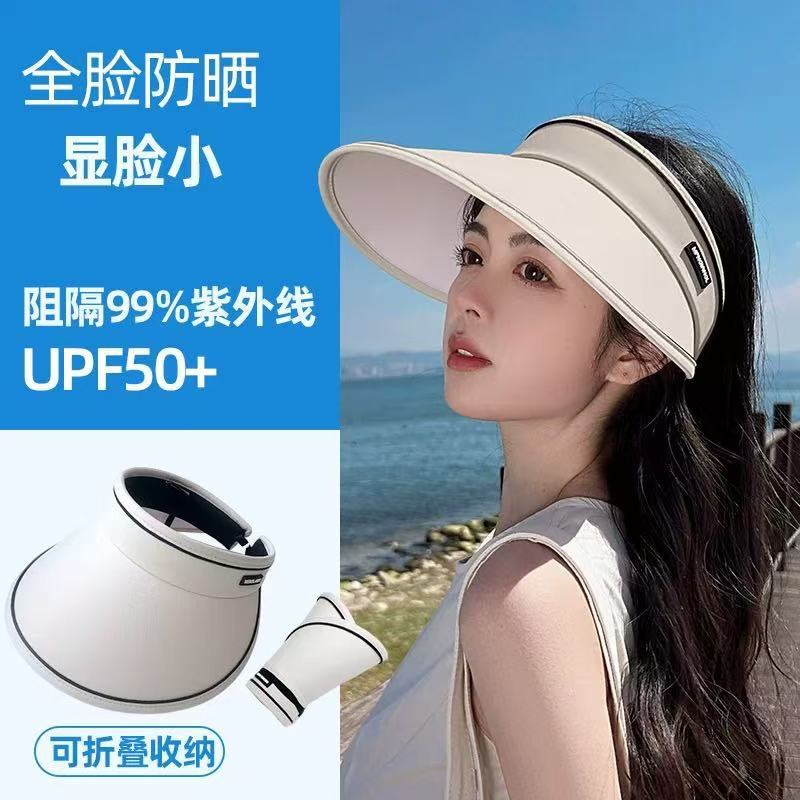작은 여름 패션 캐주얼 탑 선 스크린 캡 아이스 실크 큰 귀마 모자를 보여주는 랩 어라운드 선 스크린 모자 올 매치 페이스스토어 가기