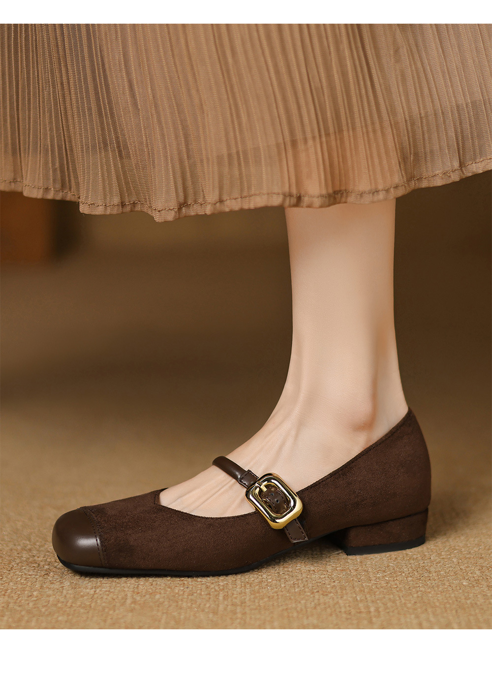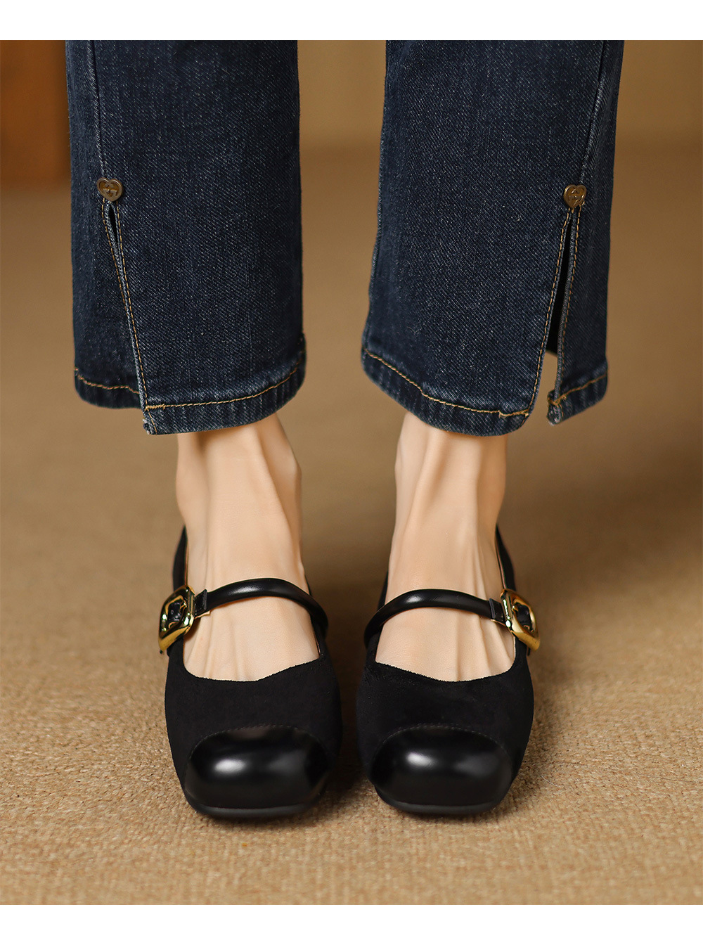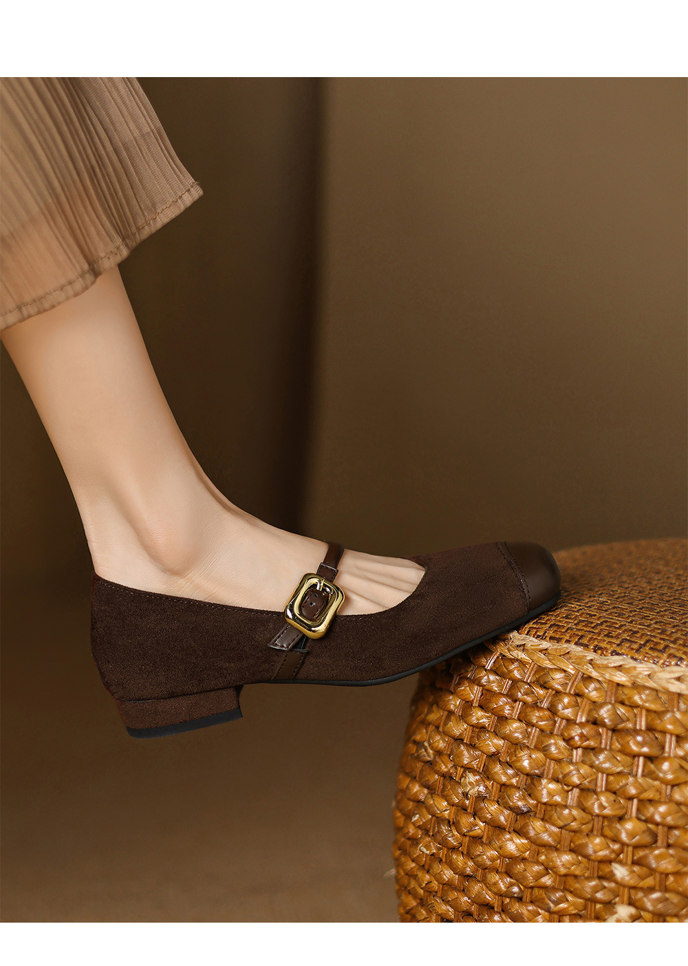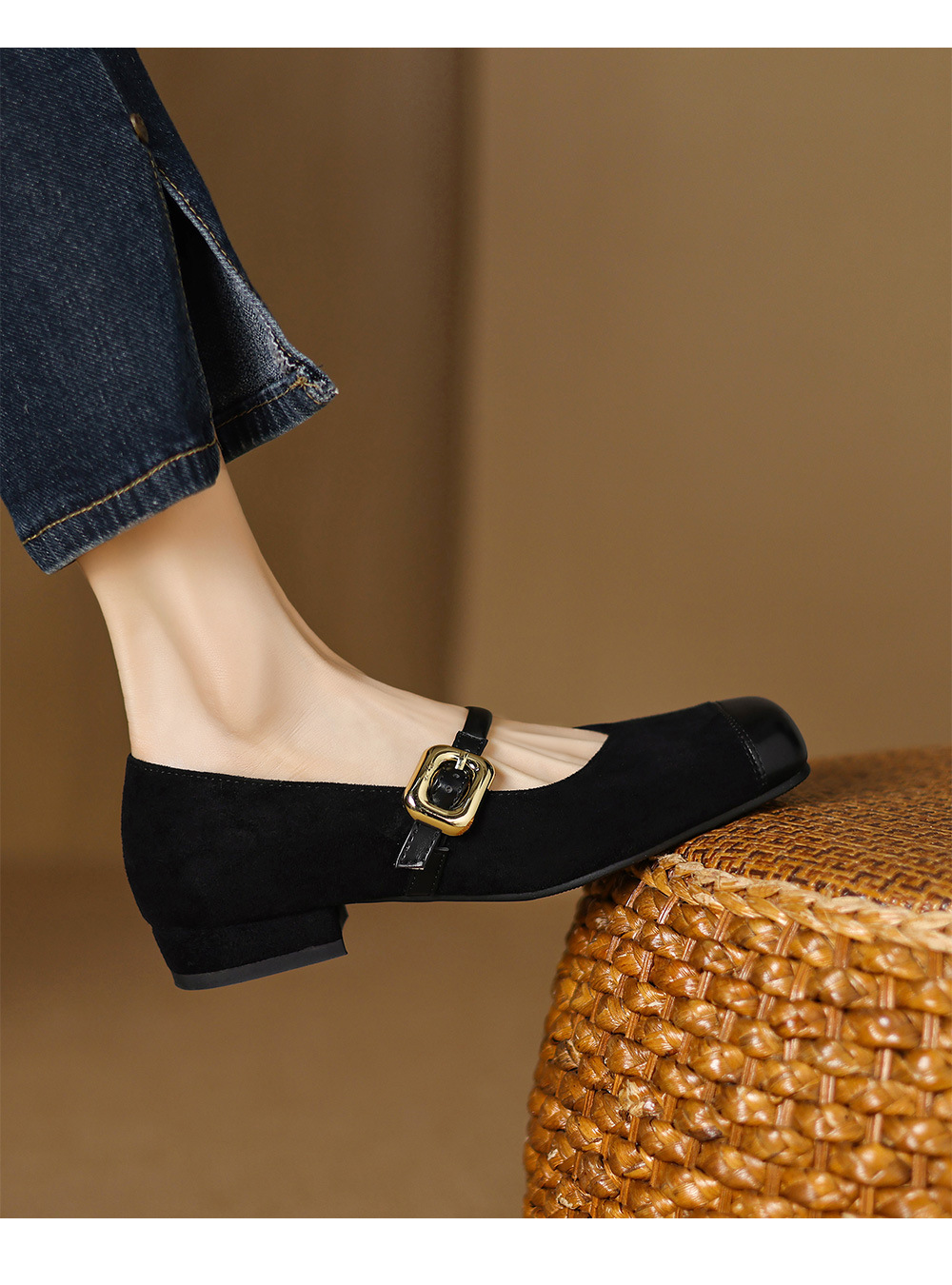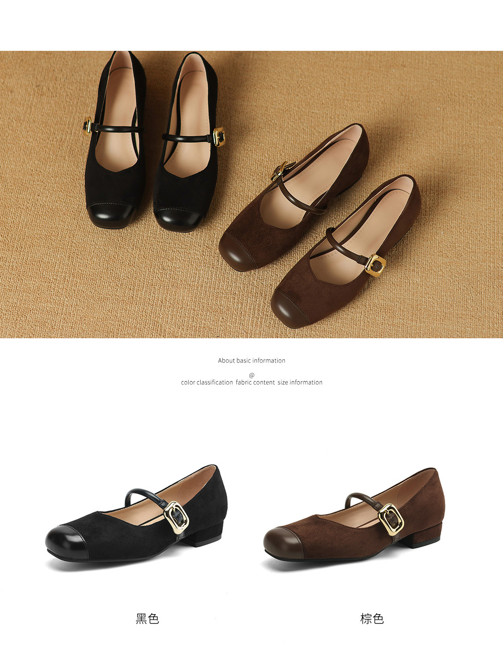 31-43 사이즈 신발 2025 봄 새 광장 머리 얕은 두꺼운 힐 메리 제인 신발 2cm 낮은 굽 신발 외부