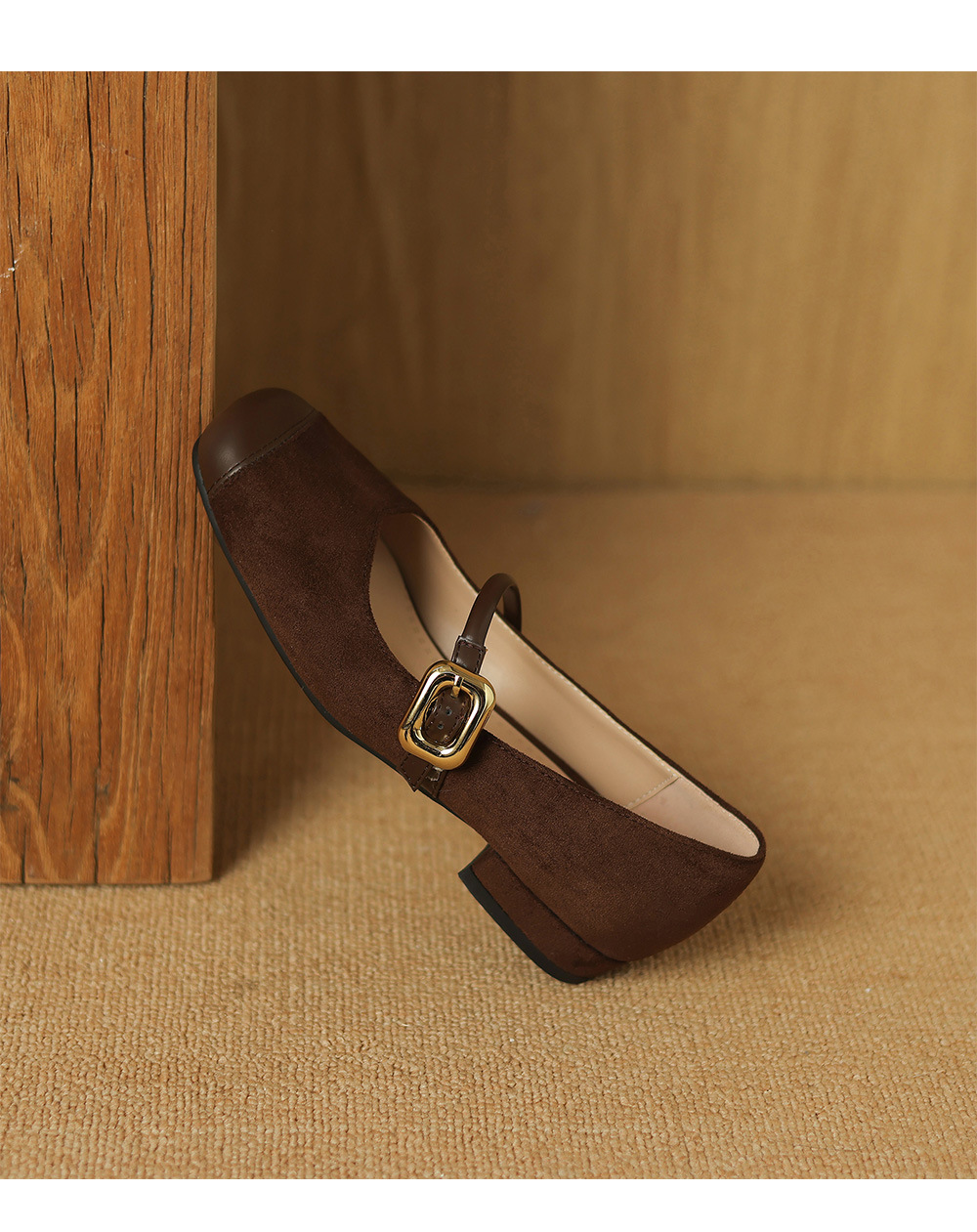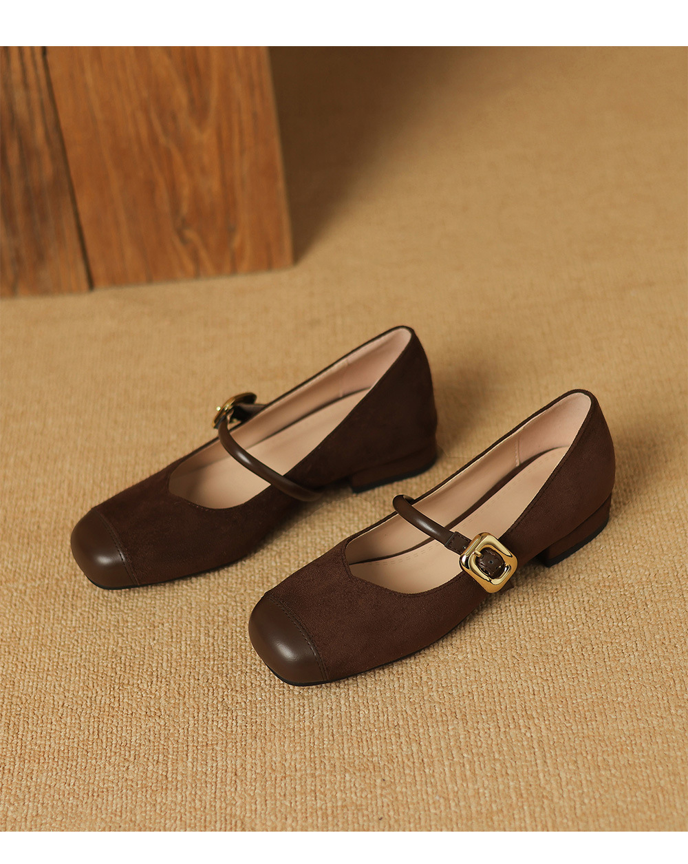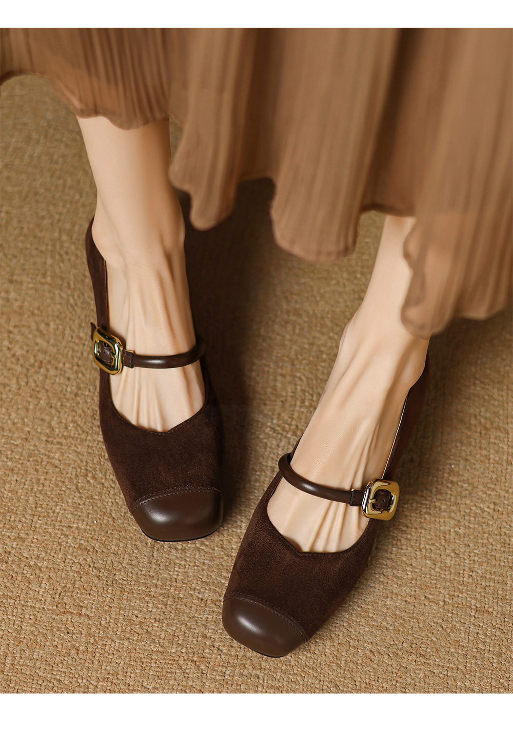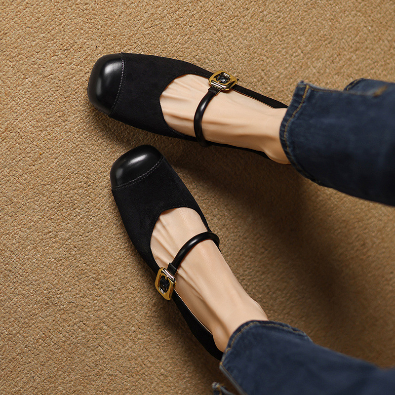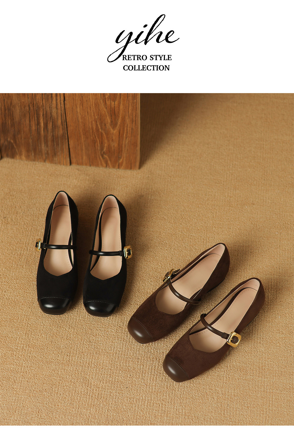 31-43 사이즈 신발 2025 봄 새 광장 머리 얕은 두꺼운 힐 메리 제인 신발 2cm 낮은 굽 신발 외부