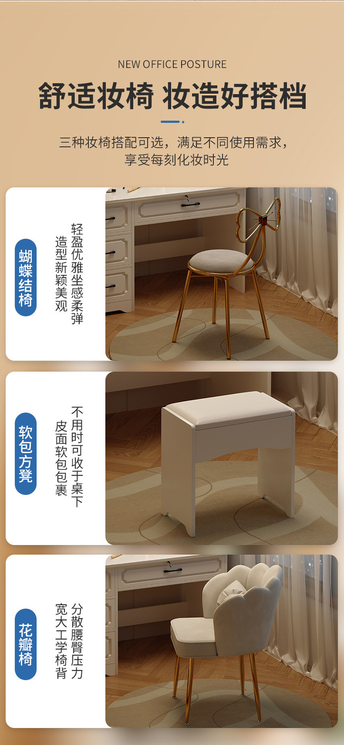 • [4개의 서랍과 2개의 문 + 스툴을 갖춘 업그레이드된 조명 모델] 80cm