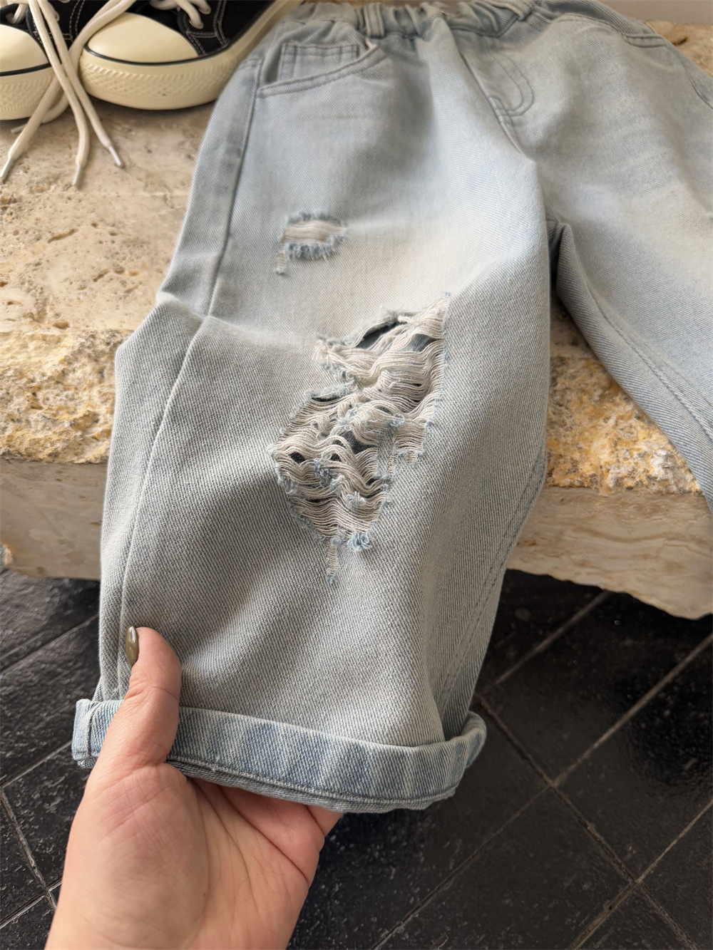 儿童春季破洞牛仔裤