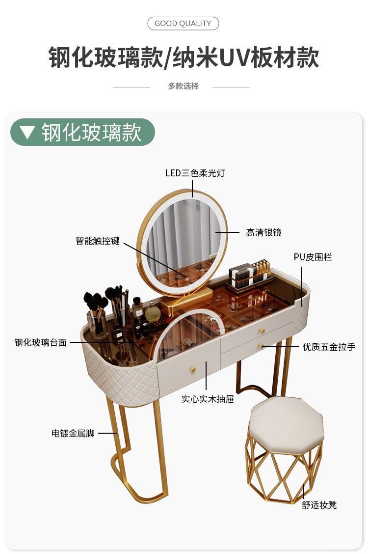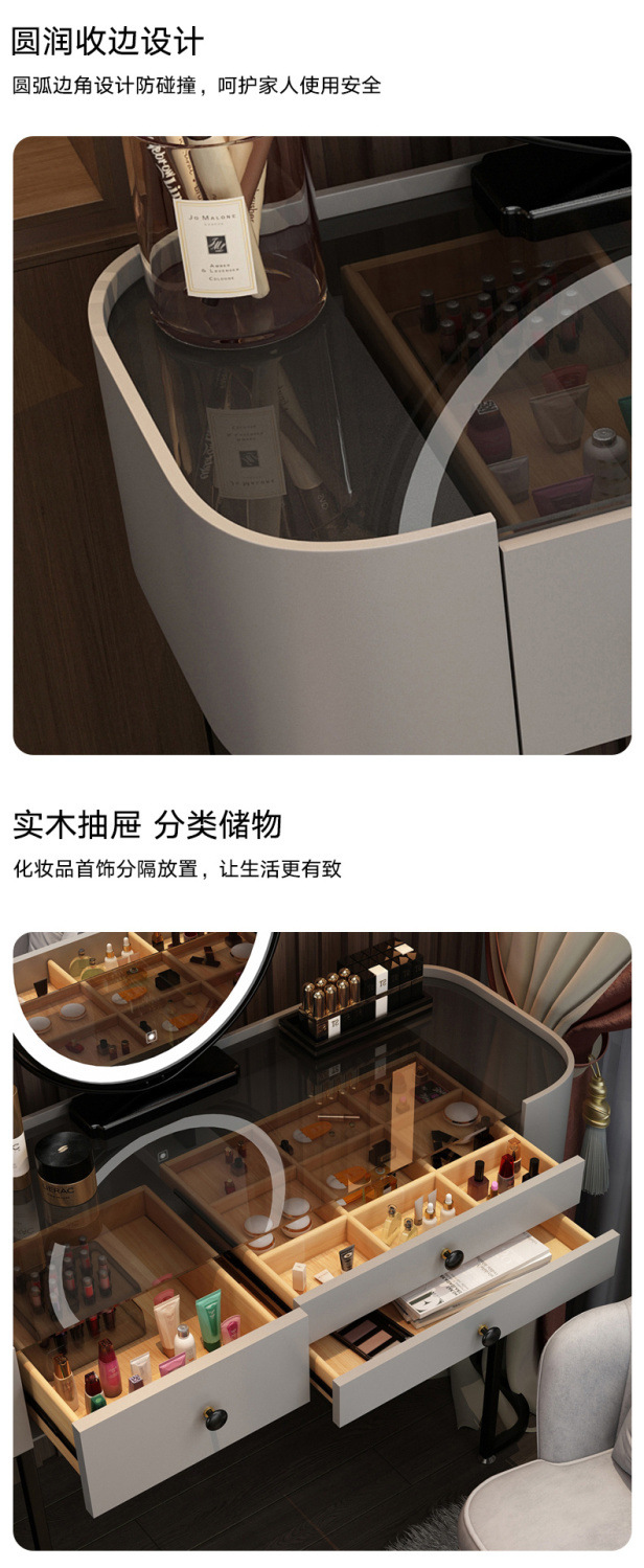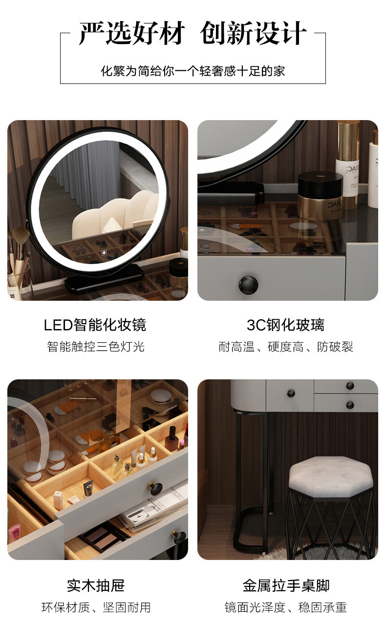 침실을위한 강화 유리 드레싱 테이블 현대 간단한 드레싱 테이블 작은 아파트를위한 가벼운 럭셔리 스토리지 메이크업 테이블