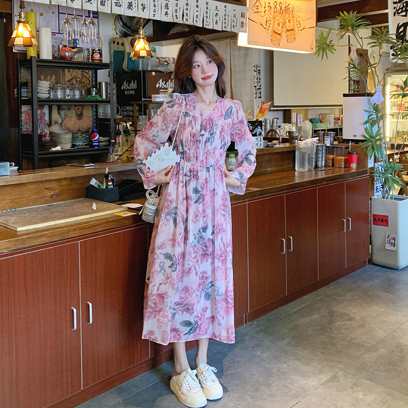 실제 프랑스 시대 감소 분위기 꽃 원피스 2025 새로운 부드러운 스타일 느슨한 서양 스타일 모리 스타일 차 브레이크 스커트스토어 가기