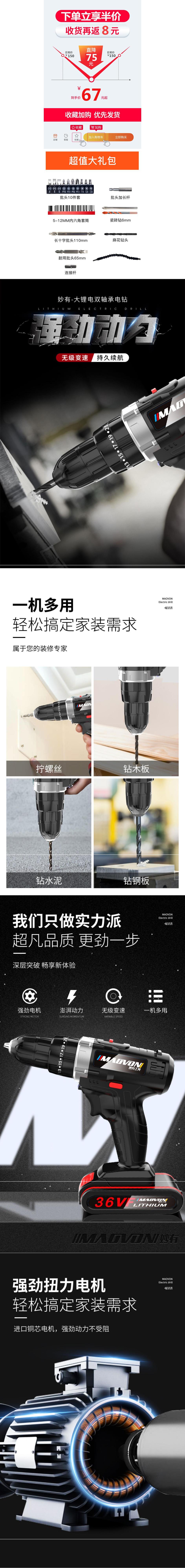 Miaoyou 36VF 충전식 핸드 드릴 핸드 건 드릴 가정용 충격 핸드 드릴 도구 전기 스크루 드라이버 작은 리튬 전기 드릴스토어 가기