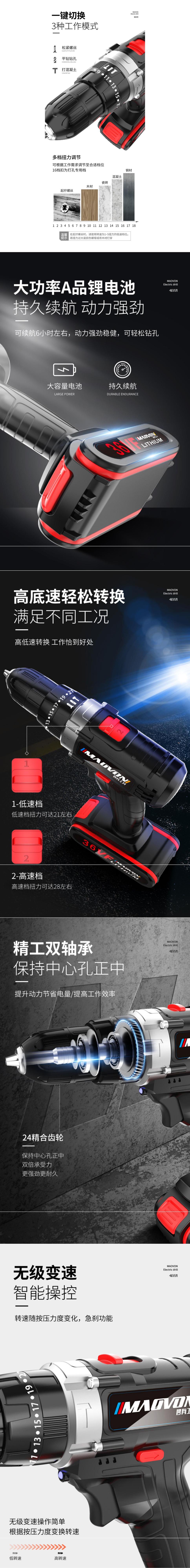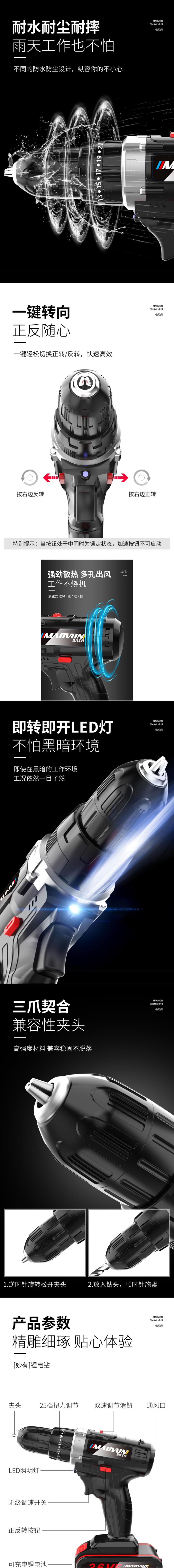 Miaoyou 36VF 충전식 핸드 드릴 핸드 건 드릴 가정용 충격 핸드 드릴 도구 전기 스크루 드라이버 작은 리튬 전기 드릴