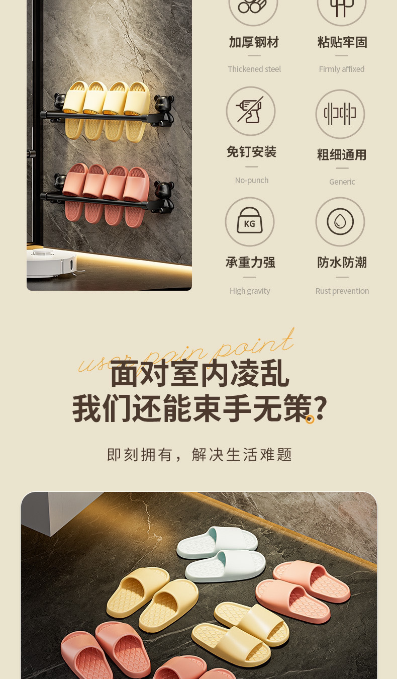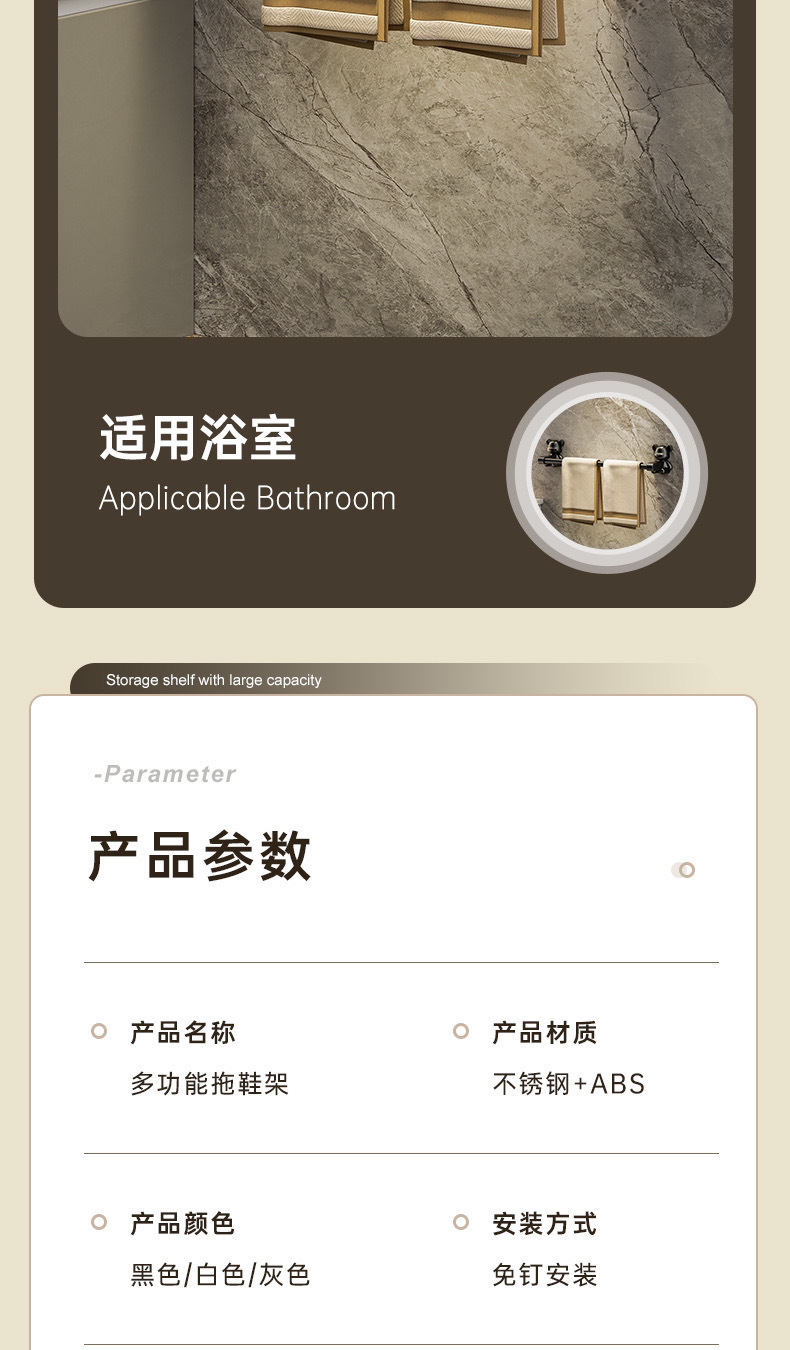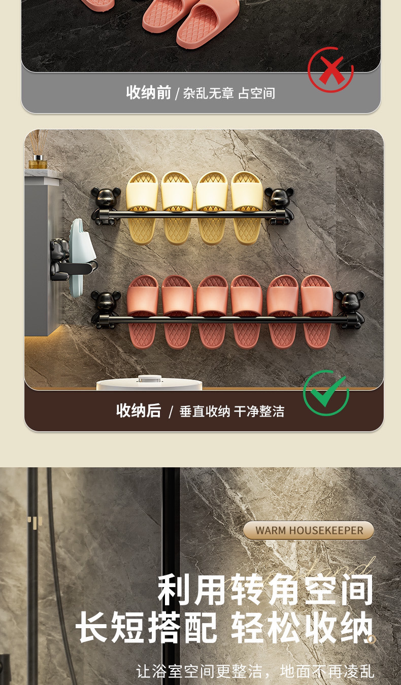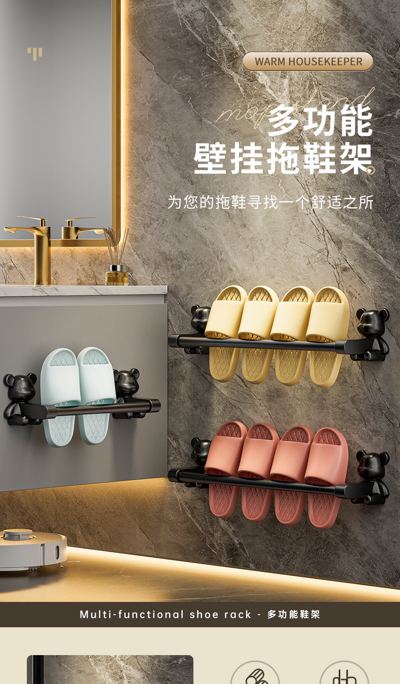 浴室免打孔拖鞋壁挂式卫生间置物架毛巾鞋收纳神器挂架厕所沥水器