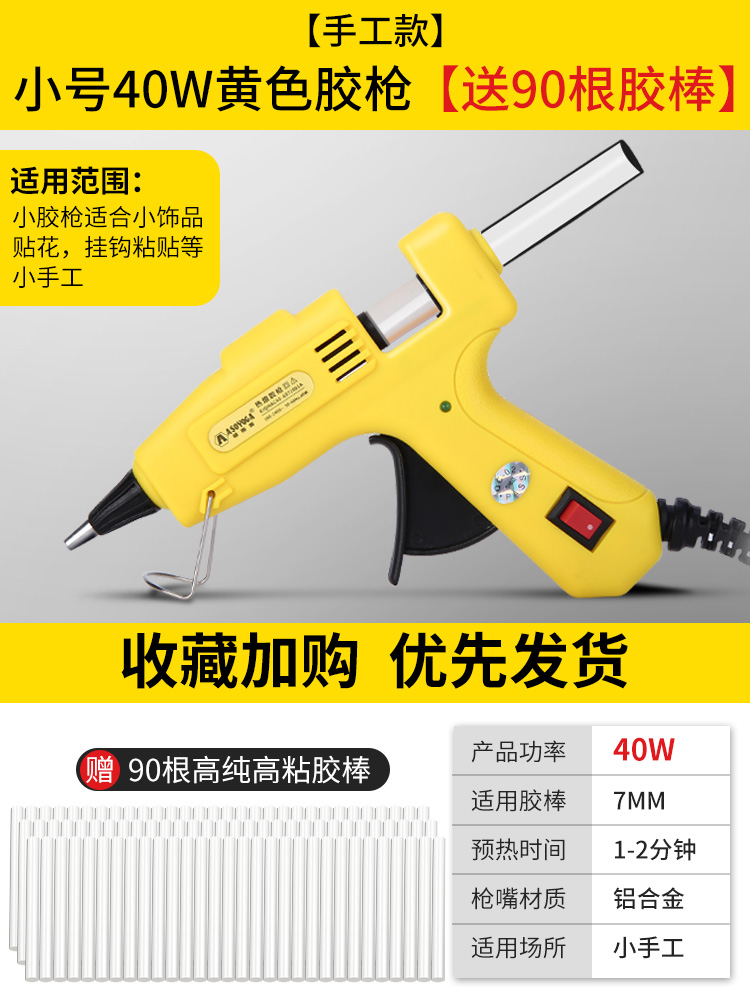 • 40W 노란색 글루건(글루스틱 90개 포함)