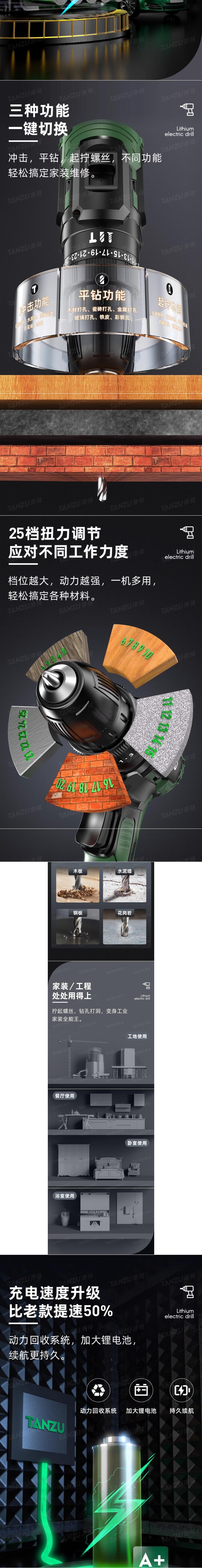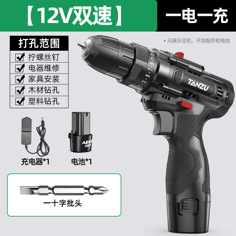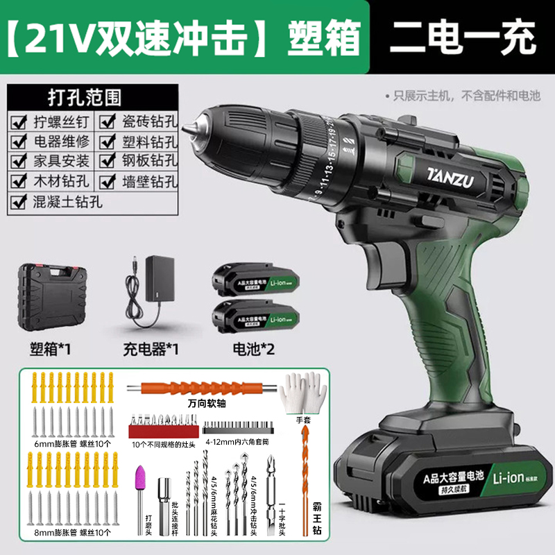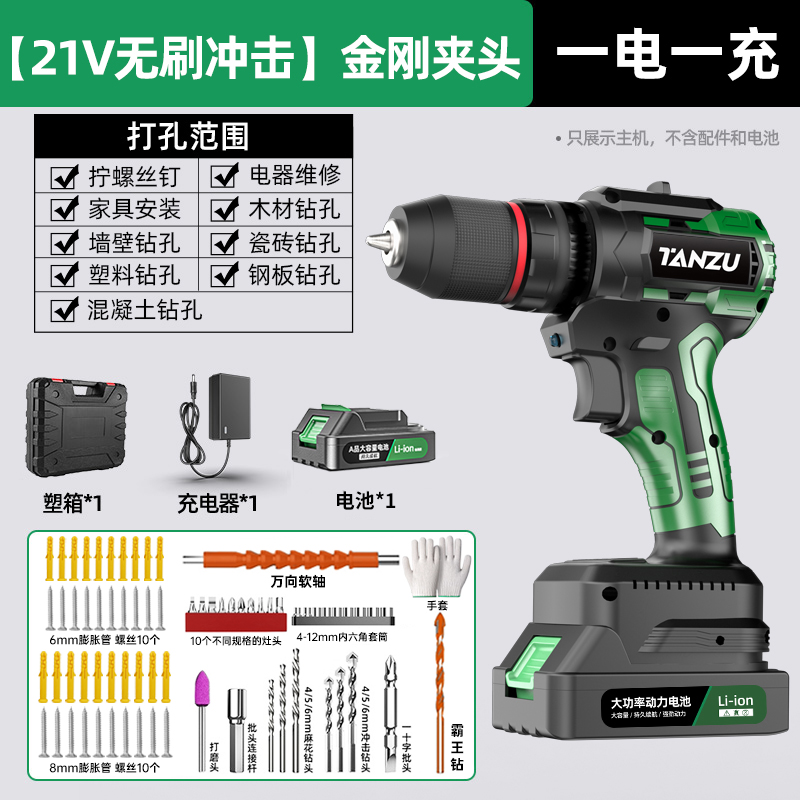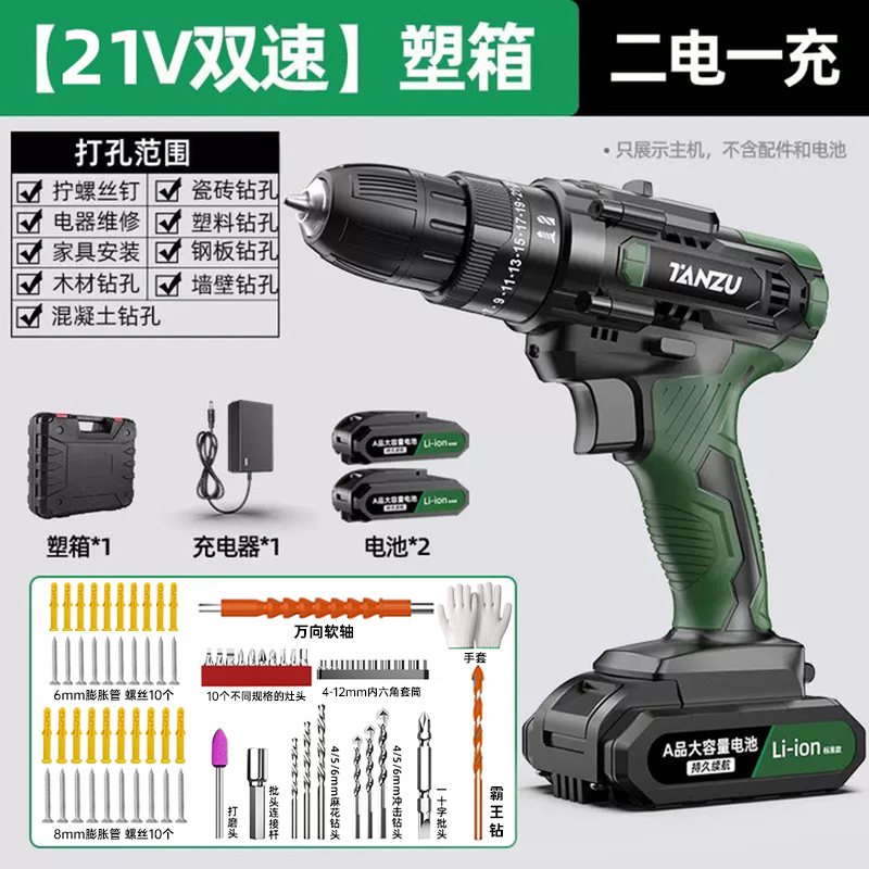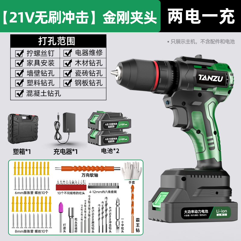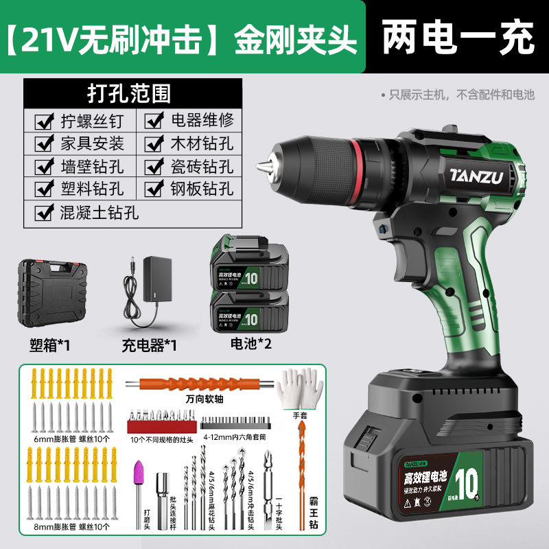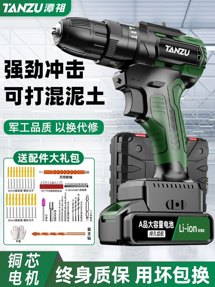 Tan Zu 핸드 전기 드릴 턴 임팩트 드릴 턴 가정용 브러시리스 리튬 배터리 도구 충전식 핸드 건 드릴 전기 스크루 드라이버
