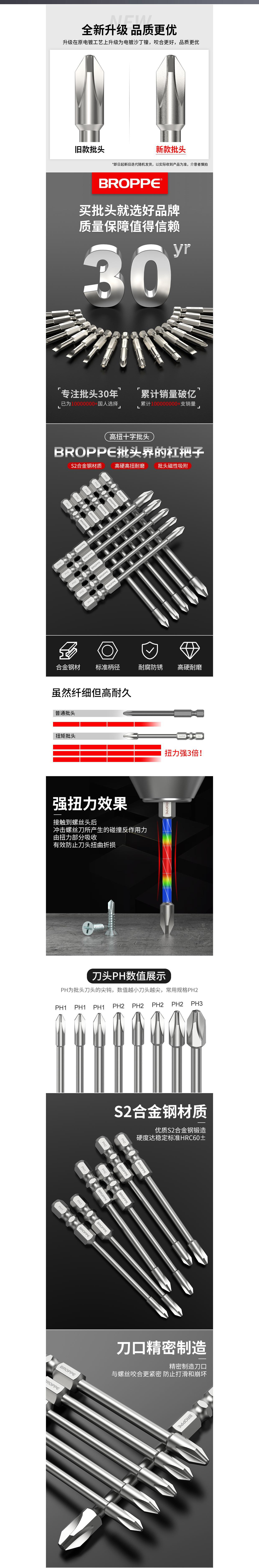 BROPPE Pupai 크로스 배치 헤드 더블 섹션 더 긴 공압 전기 스크루 드라이버 S2 스틸 강력한 마그네틱 스크류 드라이버 헤드 세트스토어 가기