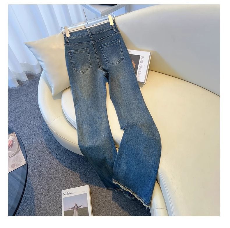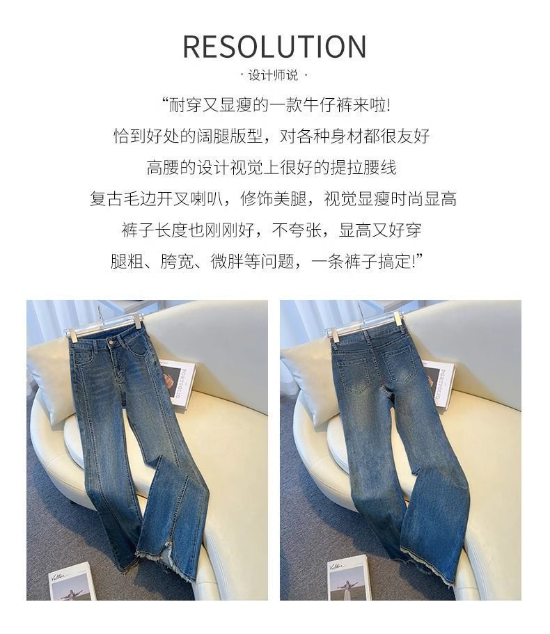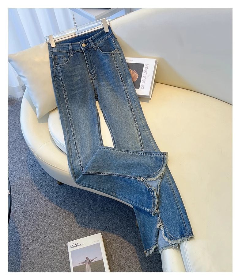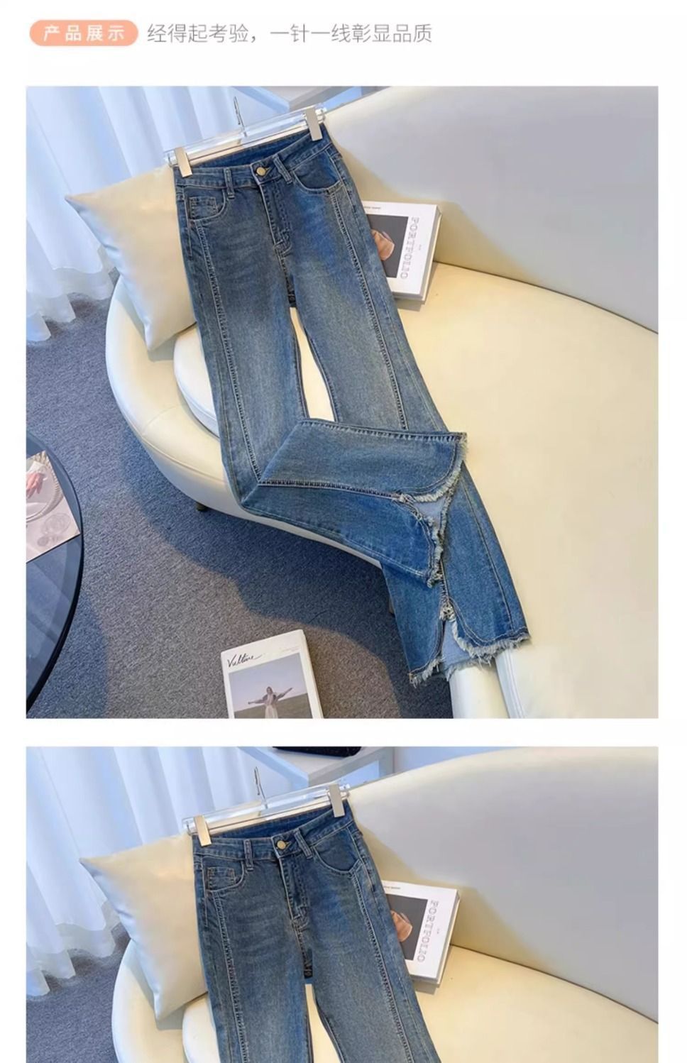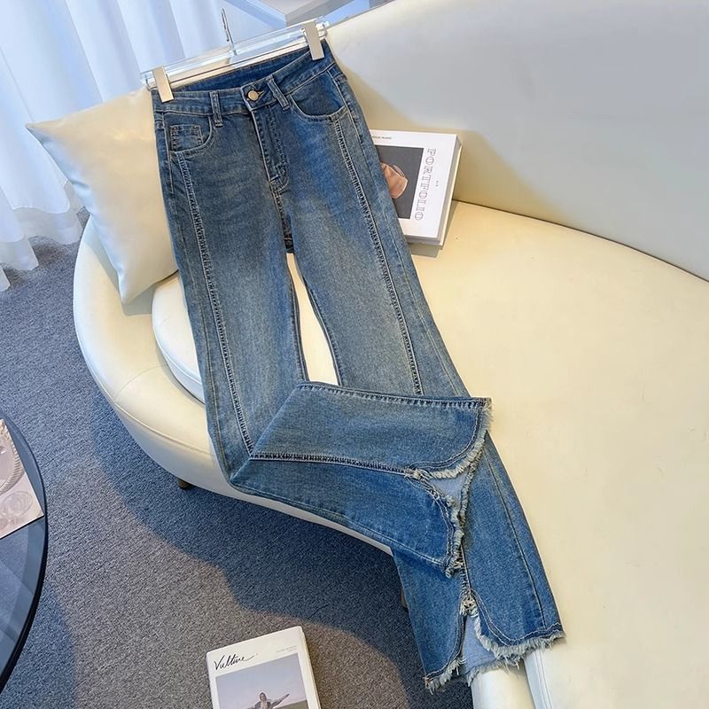빈티지 높은 허리 분할 마이크로 노예 청바지 여성 2025 년 봄 새로운 도착 작은 피겨 아첨하는 서리 호스 슈 바지스토어 가기