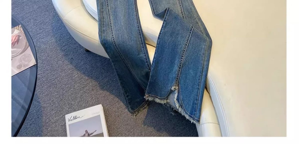 빈티지 높은 허리 분할 마이크로 노예 청바지 여성 2025 년 봄 새로운 도착 작은 피겨 아첨하는 서리 호스 슈 바지