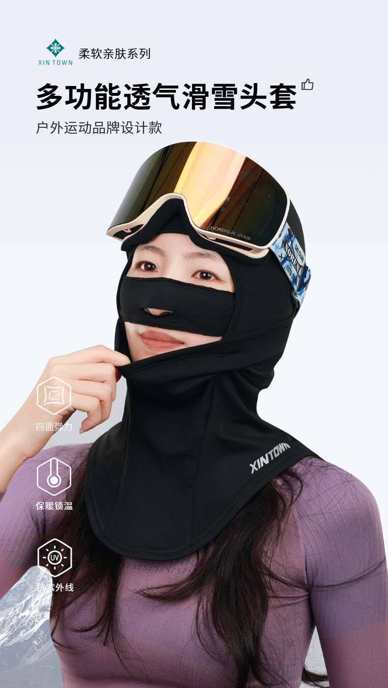 Xingheng 더블 레이어 스키 헤드 기어 베니어 라이딩 마스크 야외 가을 및 겨울 따뜻한 헤드 기어 목 보호 냉방한 얇은 벨벳 양털
