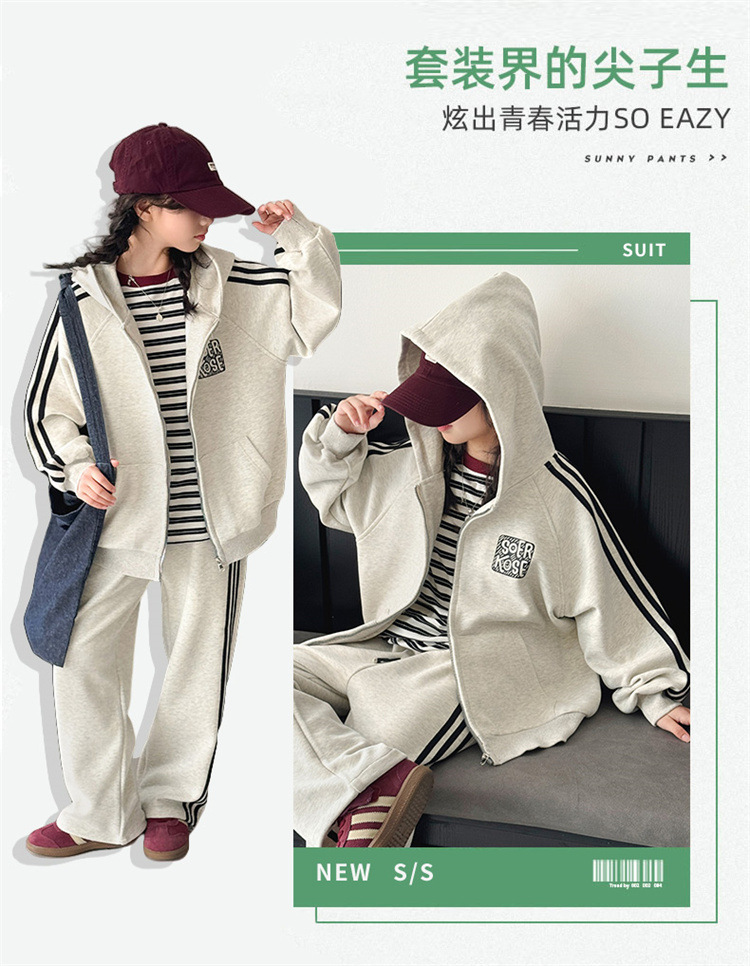 소녀 봄 의류 캐주얼 스포츠 세트 소녀 빅 보이 후드 카디건 스웨터 재킷 바지 어린이 봄과 가을 투피스 세트스토어 가기