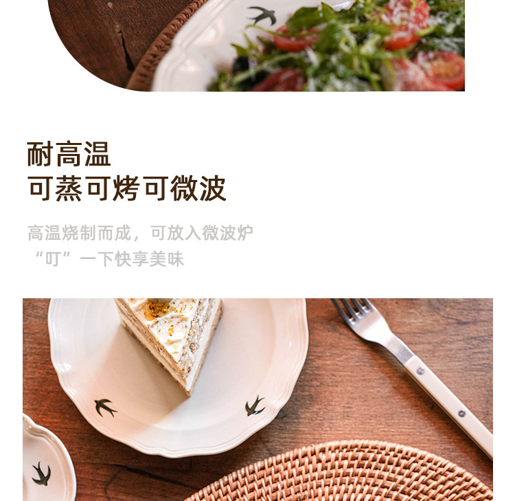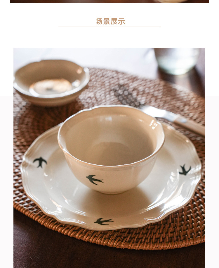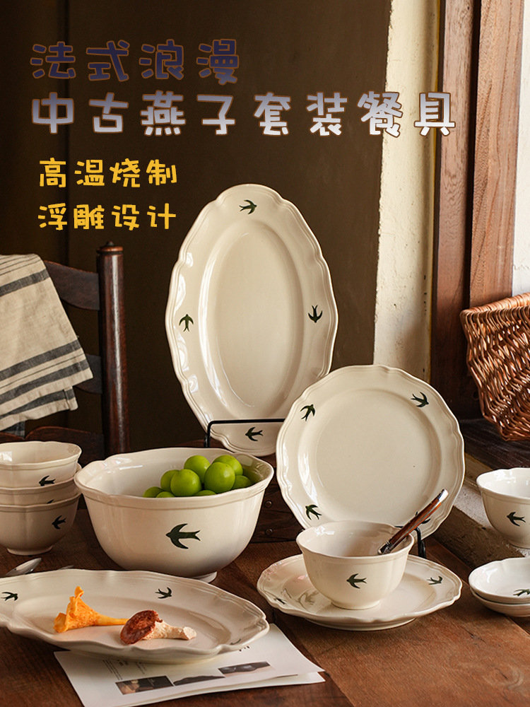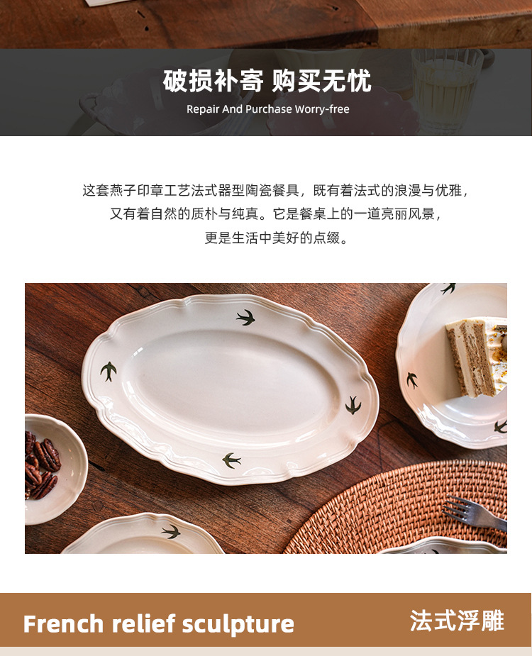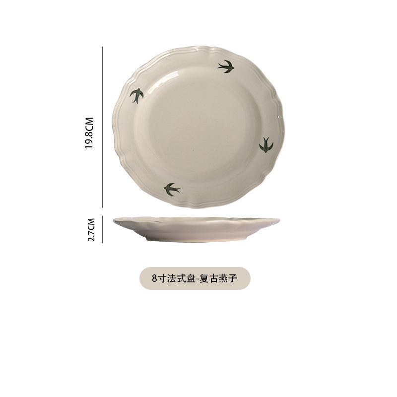 프랑스 스타일 빈티지 삼키기 세라믹 디너 플레이트 플랫 플레이트 홈 빈티지 식기 세트 오후 차 하이 뷰티 값 디저트 플레이트