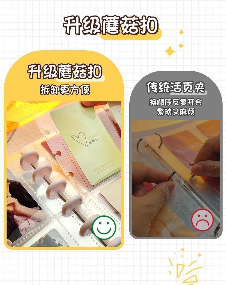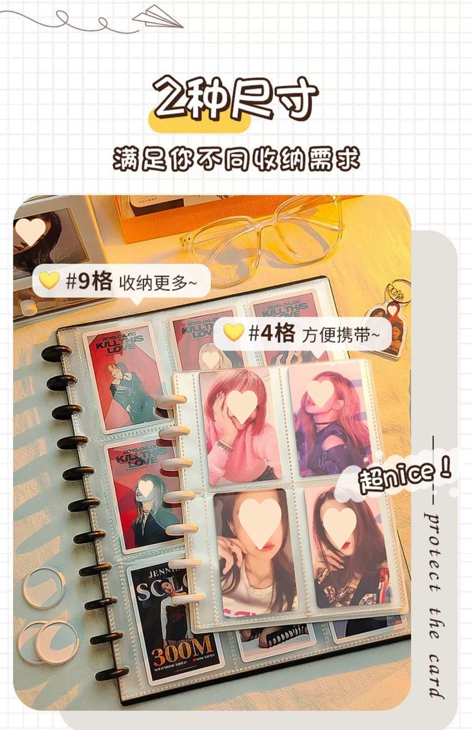 카드 보관부 버섯 버클 투명 느슨한 잎 3 인치 바람 작은 마무리 도매 국경을 대신하여 4 개의 궁전 그리드