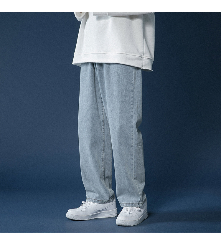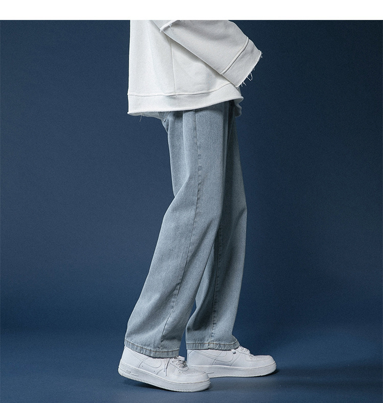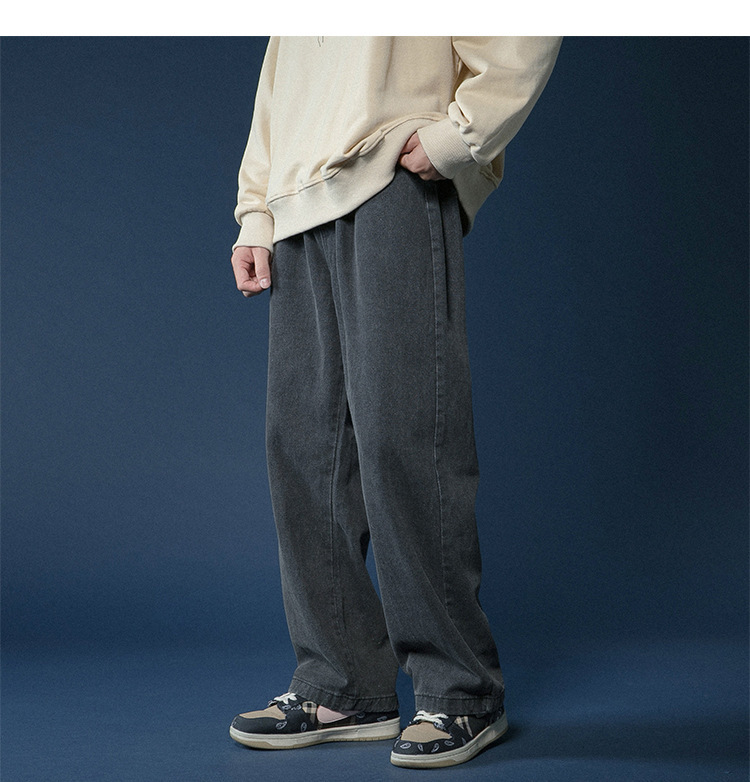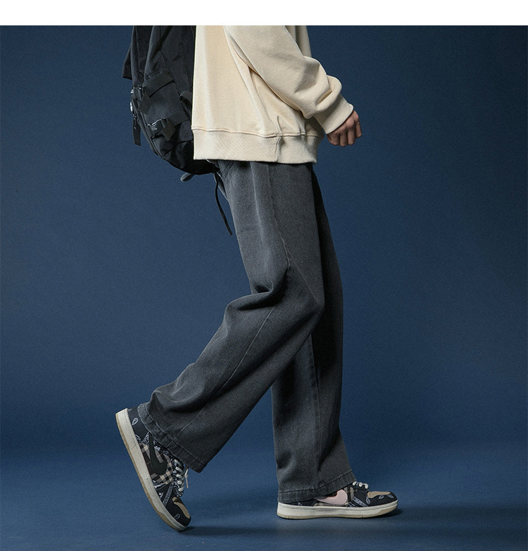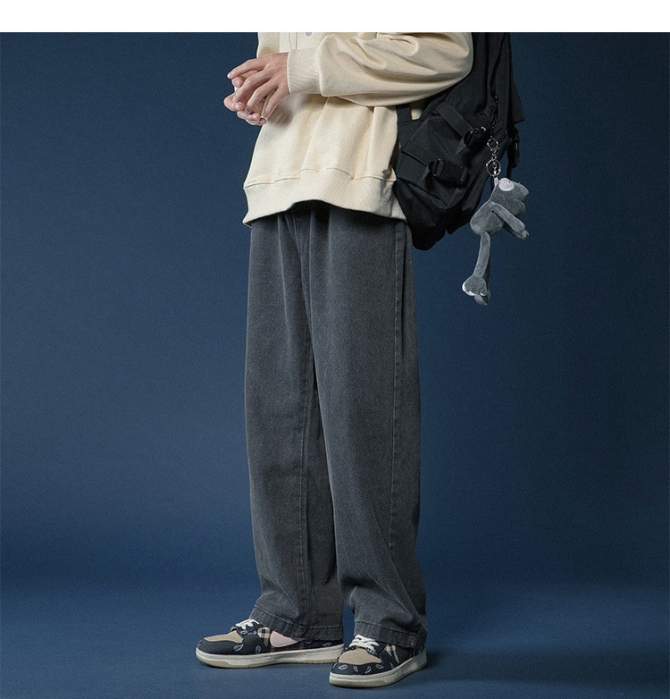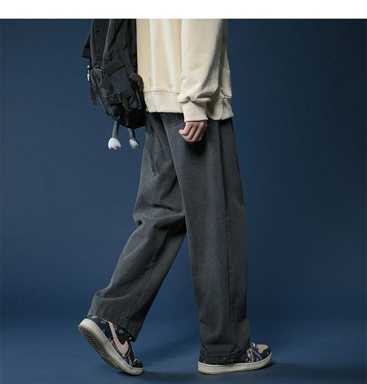 청바지 남성 스트레이트 튜브 느슨한 유행 브랜드 봄과 가을 홍콩 스타일 트렌디 한 한국 스타일 하이 스트리트 바지스토어 가기