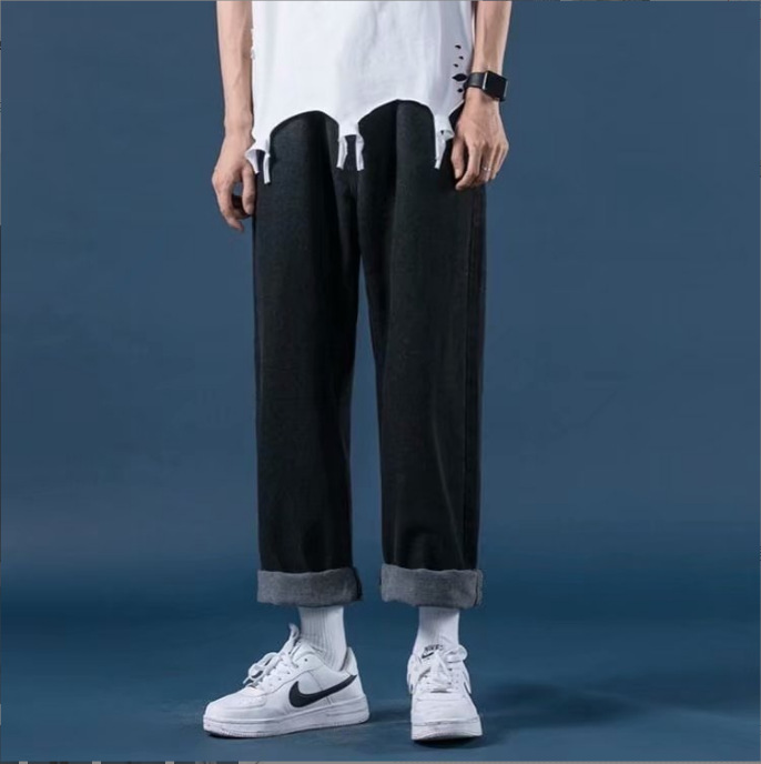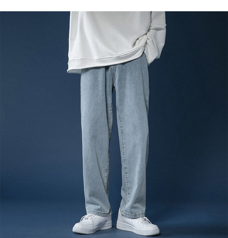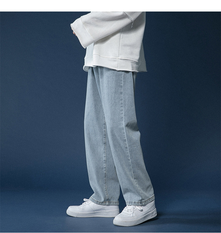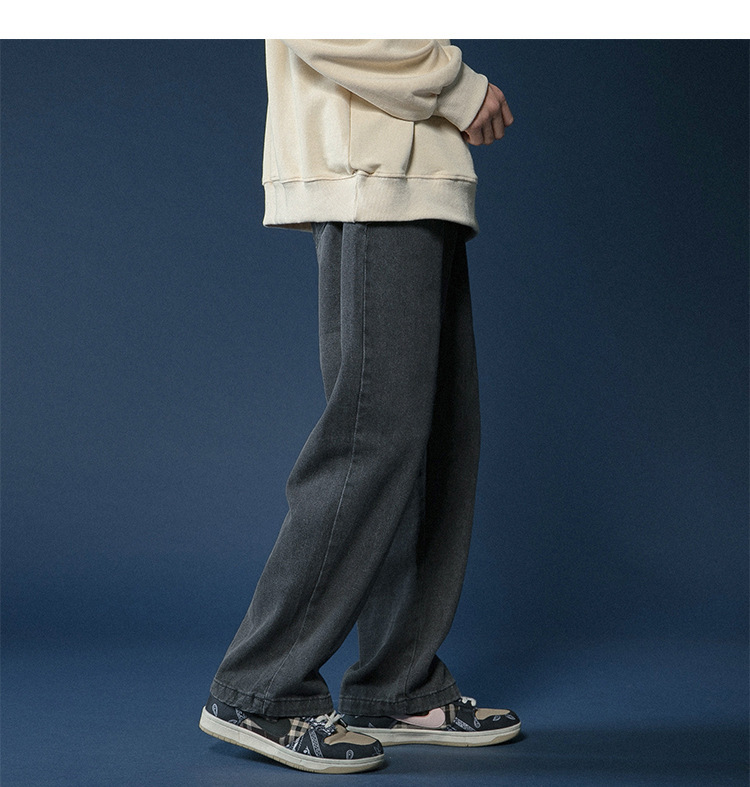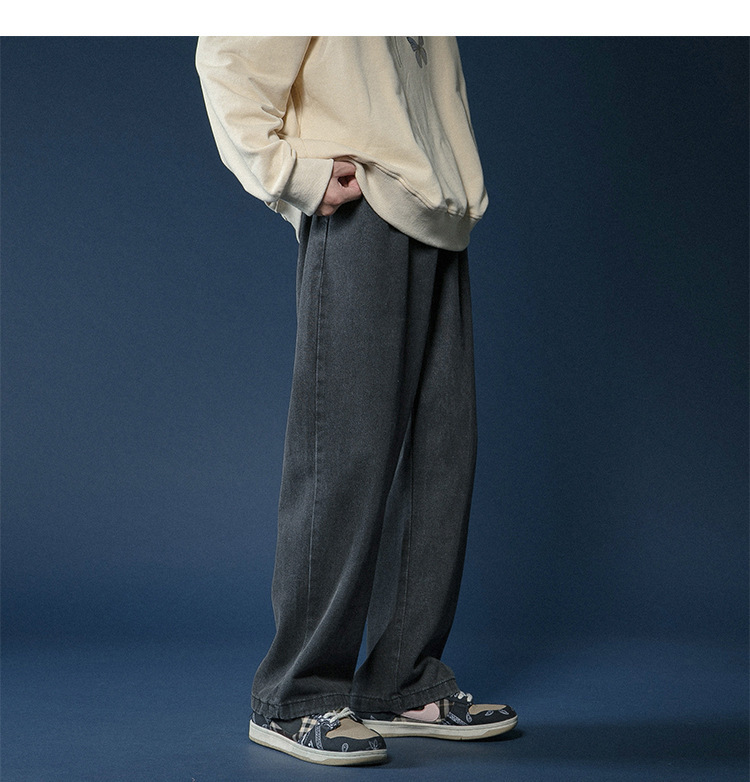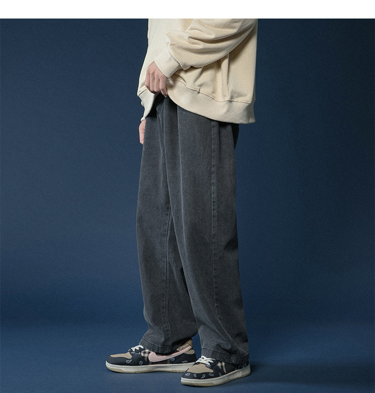청바지 남성 스트레이트 튜브 느슨한 유행 브랜드 봄과 가을 홍콩 스타일 트렌디 한 한국 스타일 하이 스트리트 바지스토어 가기