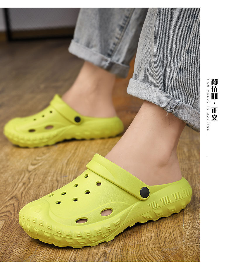 Baotou 하프 슬리퍼 여성 여름 의상 2024 새로운 스타일 인터넷 인기있는 슈퍼 핫 두꺼운 미끄럼 방지 신발 올매치 신발
