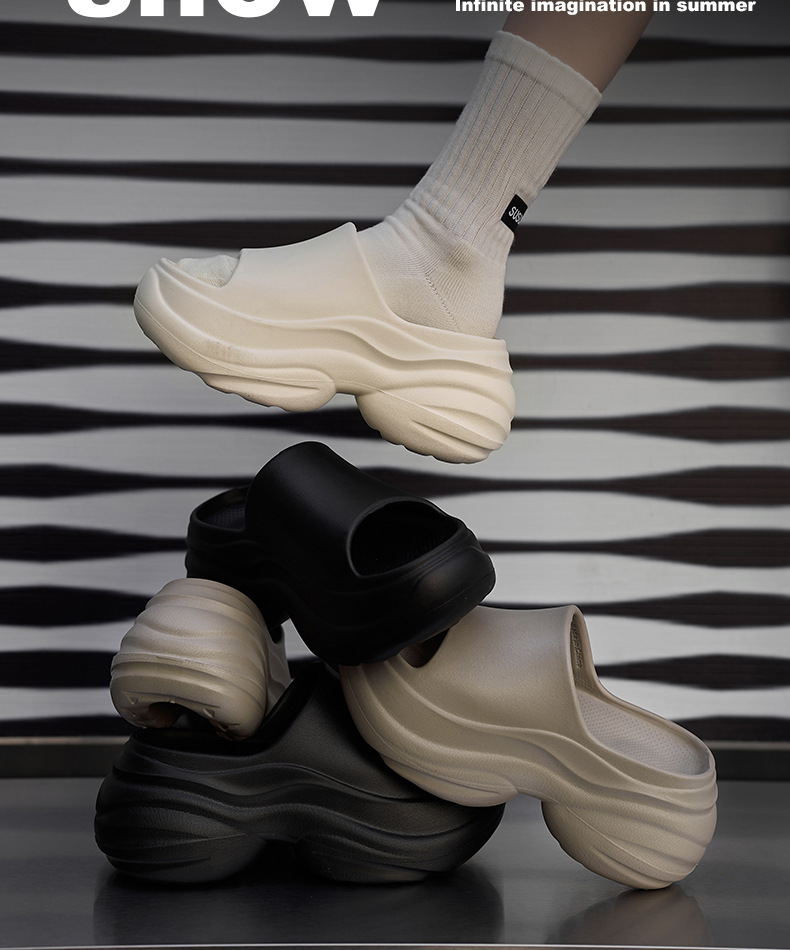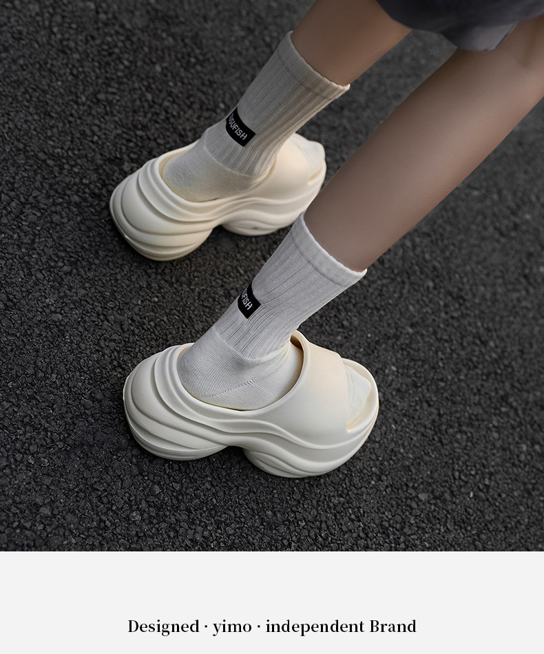 8cm 높이 증가 슬리퍼 여성용 외모 두꺼운 밑창 똥 착용 에바 홈 슬리퍼 여름 실내 욕실 통기성 샌들