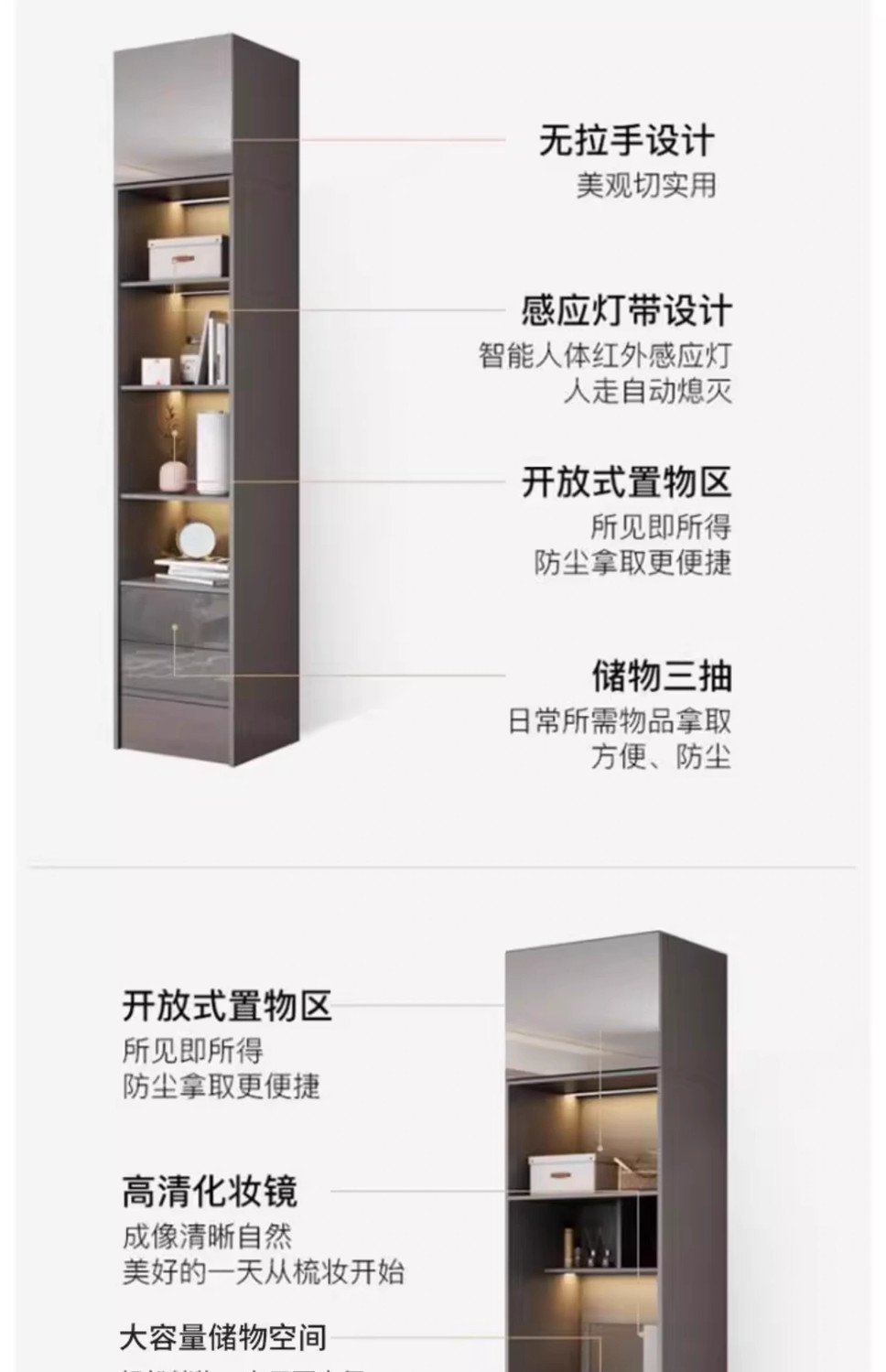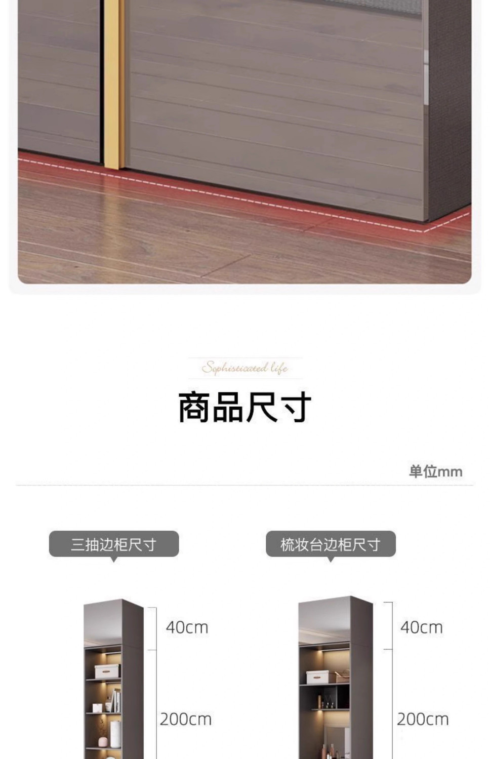 • [아우디 그레이] 0.8m 옷장 + 상단 캐비닛 + 측면 캐비닛 [2 도어]