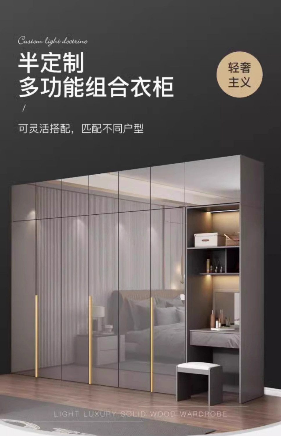 가벼운 고급 옷장 홈 현대 침실 간단한 옷장 조합 8 도어 옷장 작은 아파트 임대 룸 환경 친화적 인 옷장