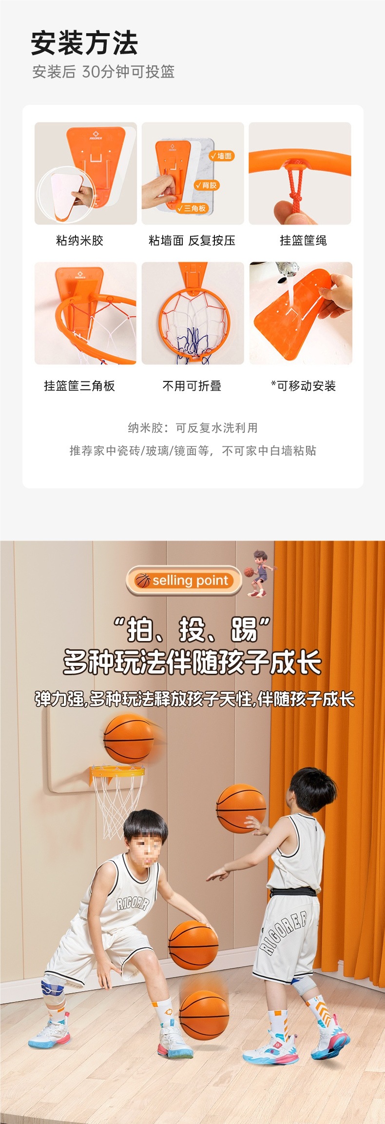 • [바구니 조합] 오렌지 - 업그레이드 모델 + 벽걸이형 농구대 - 농구공 3호 (유아게임용)