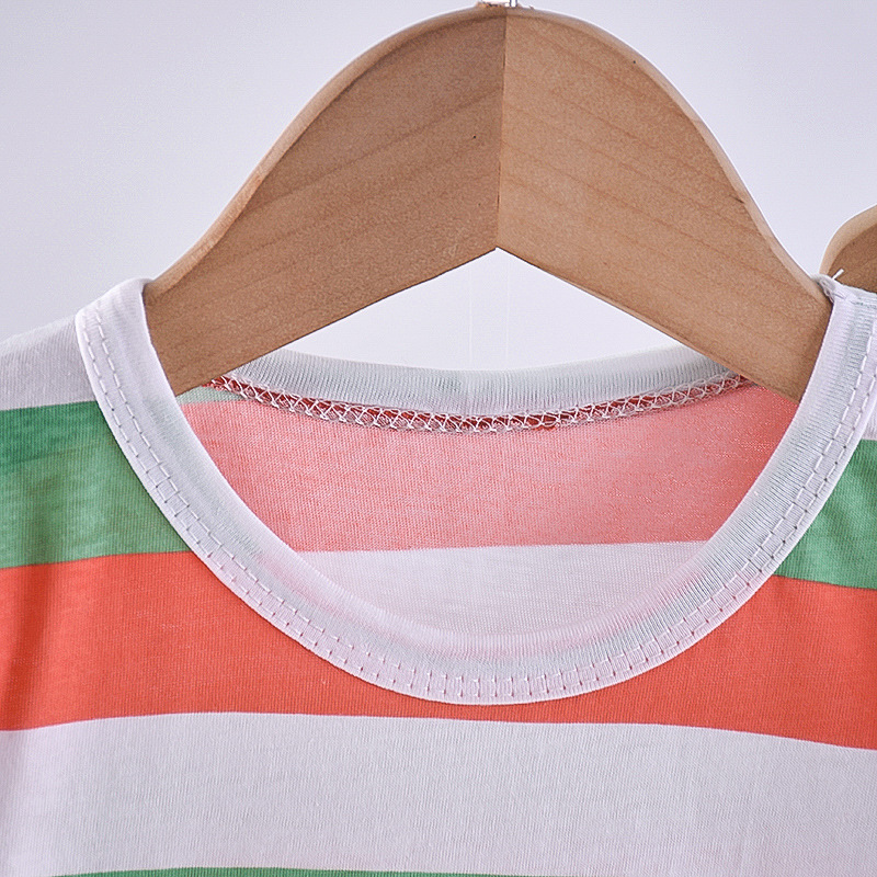 2025 새로운 아동복 조수 0-3 남학생과 여학생을위한 여름 패션 어린이 세트 스트라이프 멜빵 투피스 세트 2