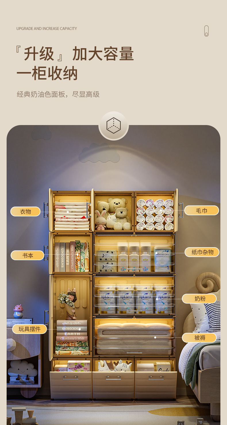 설치가 필요 없는 아기 옷장, 두꺼운 유아용 수납장, 가정용 장난감 및 간식 정리함, 옷 보관함, 어린이용스토어 가기