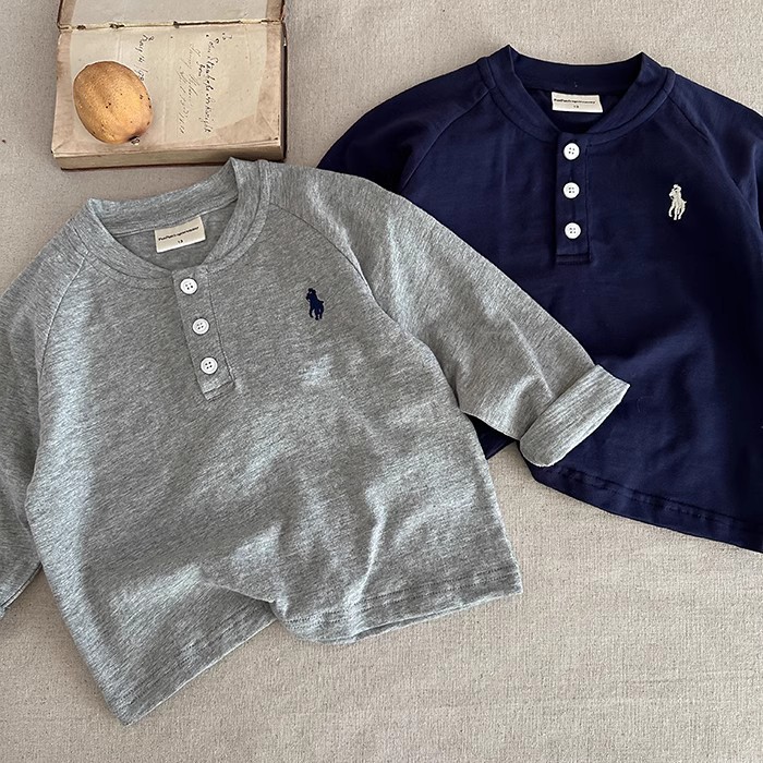 어린이 POLO 셔츠 2025 린린마 봄 새 소년들과 소녀들의 수놓은 티셔츠 아기 한국식 루즈베이스 T스토어 가기