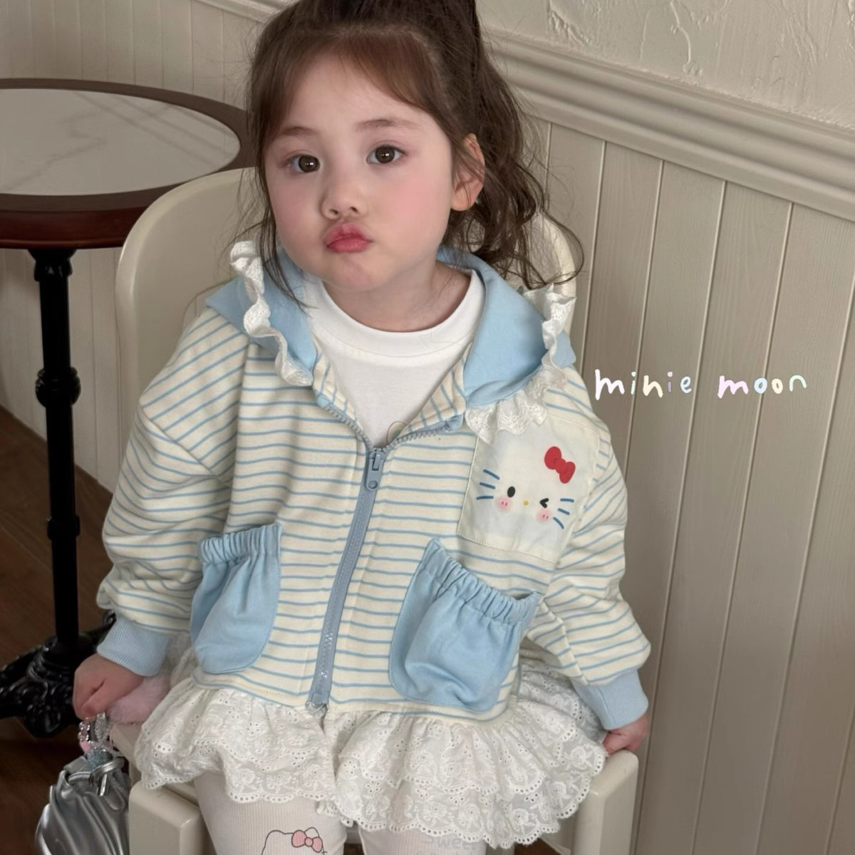 [핑크] 봄 아동복 2025 신작 소녀 한국식 만화 고양이 레이스 자켓 레깅스스토어 가기