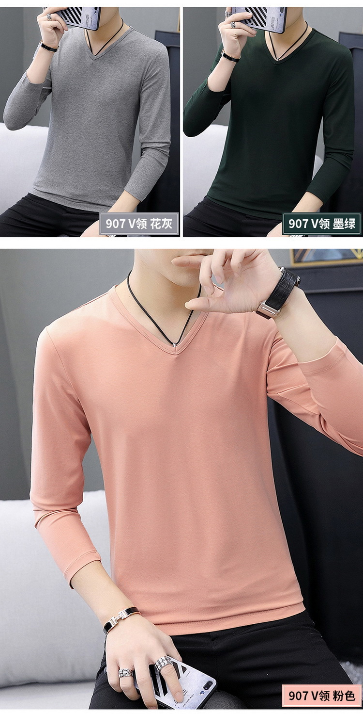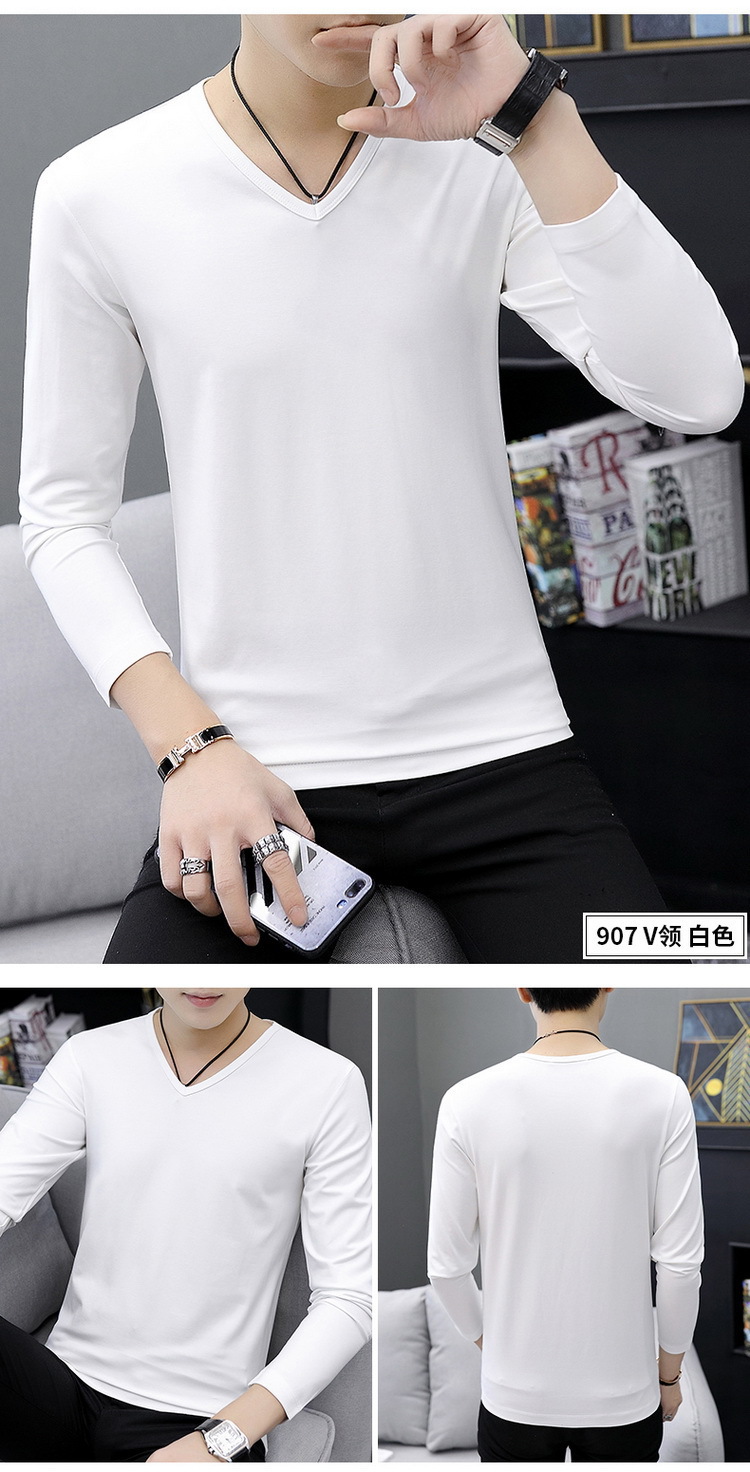 남성용 긴팔 티셔츠 봄과 가을 느슨한 패셔너블 이너리 엑스트라 플러스 사이즈 탄성베이스 셔츠 남성용 탑 옷스토어 가기
